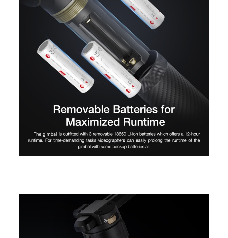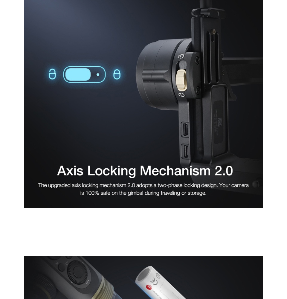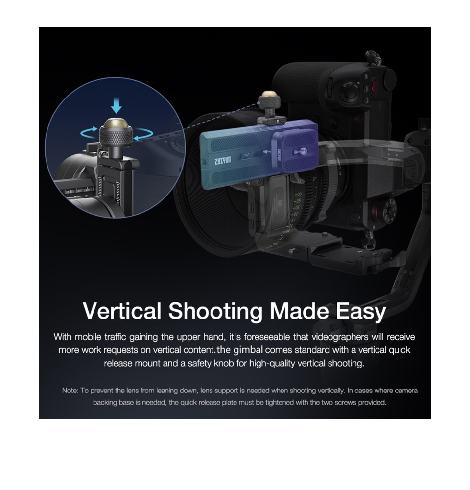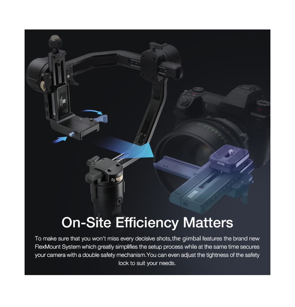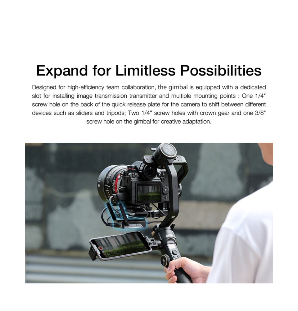 - Dedicated mounting points for attaching an optional Zhiyun-Tech TransMount transmitter