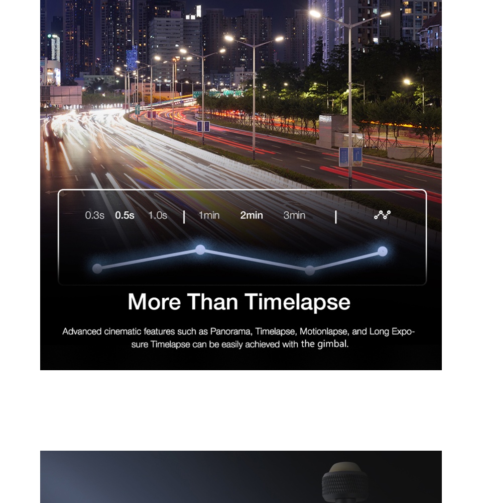 - Panorama, time-lapse, motion-lapse, and long exposure time-lapse via the companion iOS/Android app