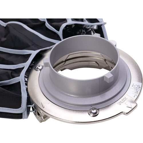 • Armed with an upgraded dual-sided and foldable quick release mechanism, the Light Dome III from Aputure accelerates the set-up time for its 16-sided, point source-softening circular softbox, bringing professional, portrait-ready light to any shoot in mere seconds. The parabolic, hexadecanol structure of the Light Dome III is fortified by 16 durable steel support rods, which now snap into place with the downward press of its widely-compatible Bowens Mount bracket, saving valuable time on set.
