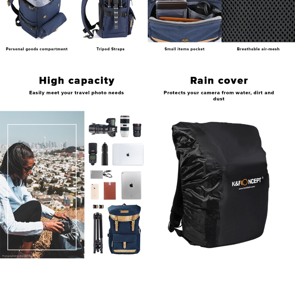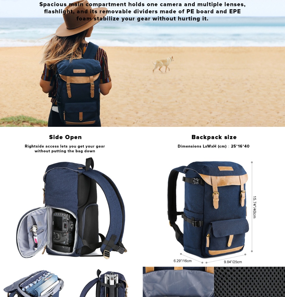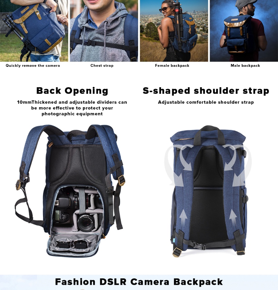 • This camera backpack is a good partner for photographers and can also work as a transit bag during a long journey.