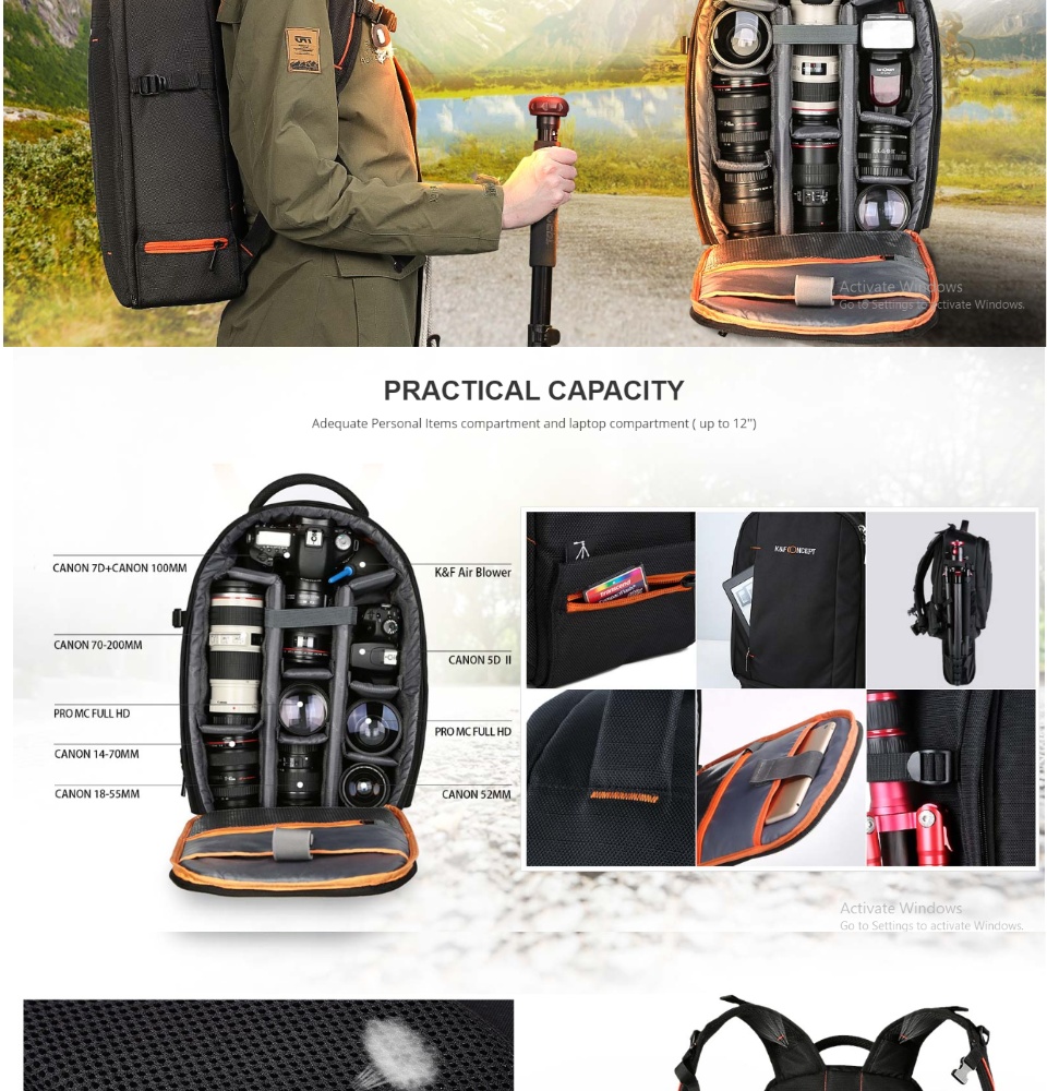 K&F Concept Nylon Large DSLR Camera Backpack for DSLR Mirrorless Camera Travel Photography Bag - KF13.037 SHUTTERPAK LARGE