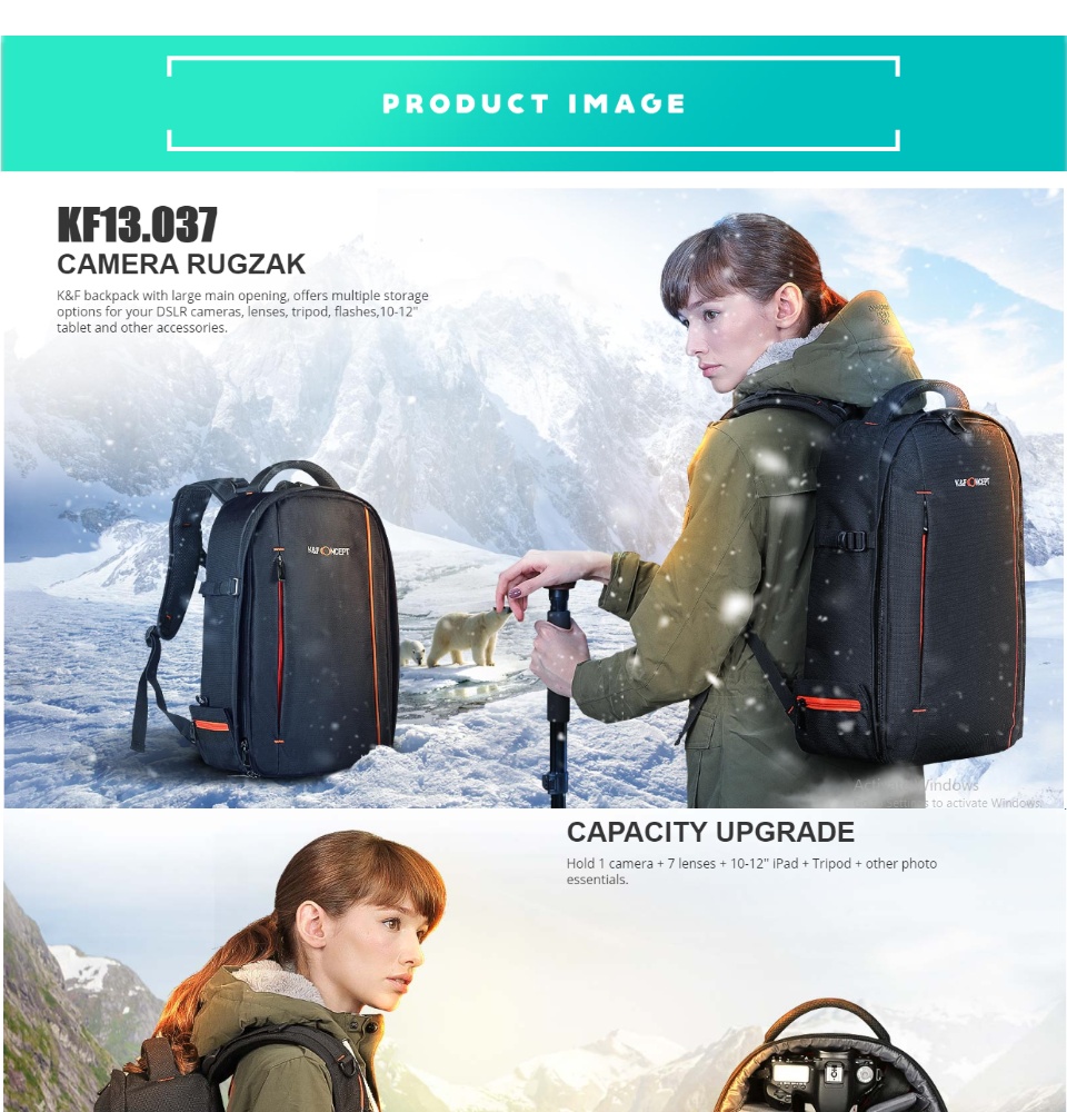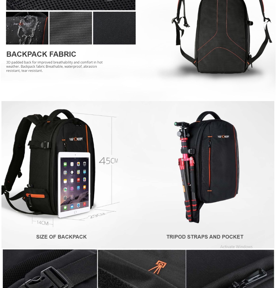 - This backpack with large main opening offers multiple storage options for your DSLR cameras, lenses, tripod, flashes,10-12" tablet and other accessories.