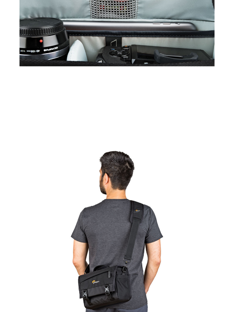 • Holds a Mirrorless Camera, Lens & Tablet