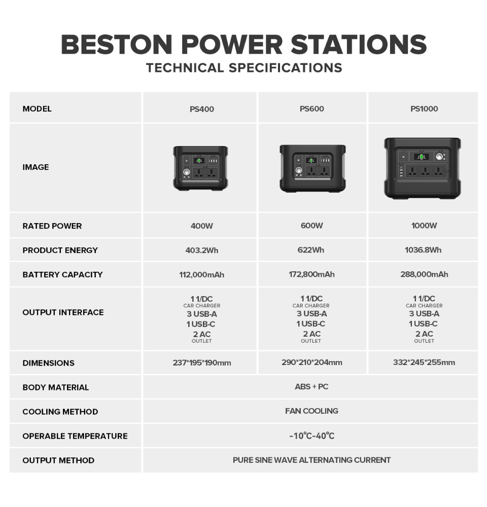 • Beston Portable Power Station Outdoor Large Power Supply Bank Travel Generator 400W 600W 1000W