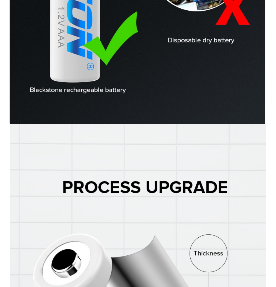 - Improved low self-discharge makes it still maintain 75% of capacity after 3 years of non-use