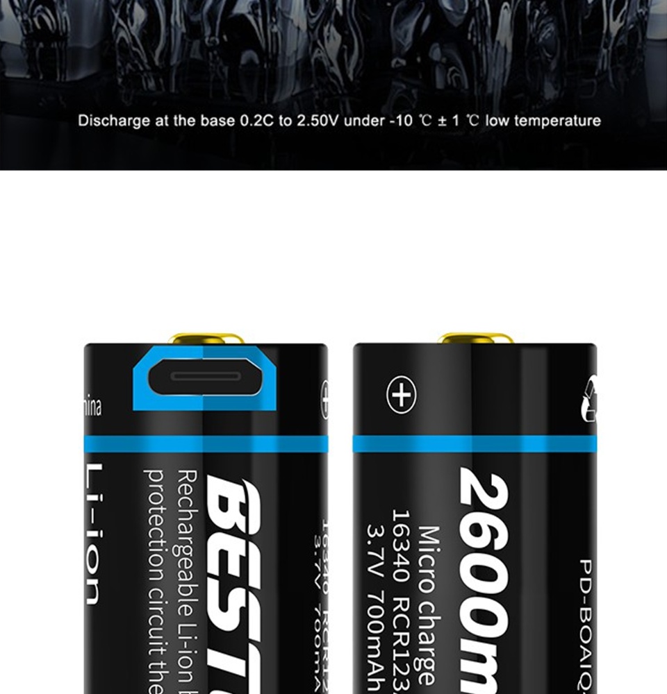 model: Beston 3.7v 700mAh ICR 16340 RCR123A Li ion Micro USB battery