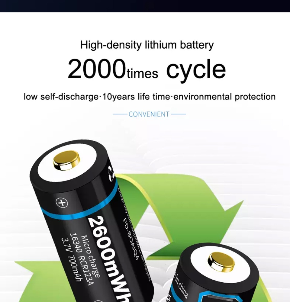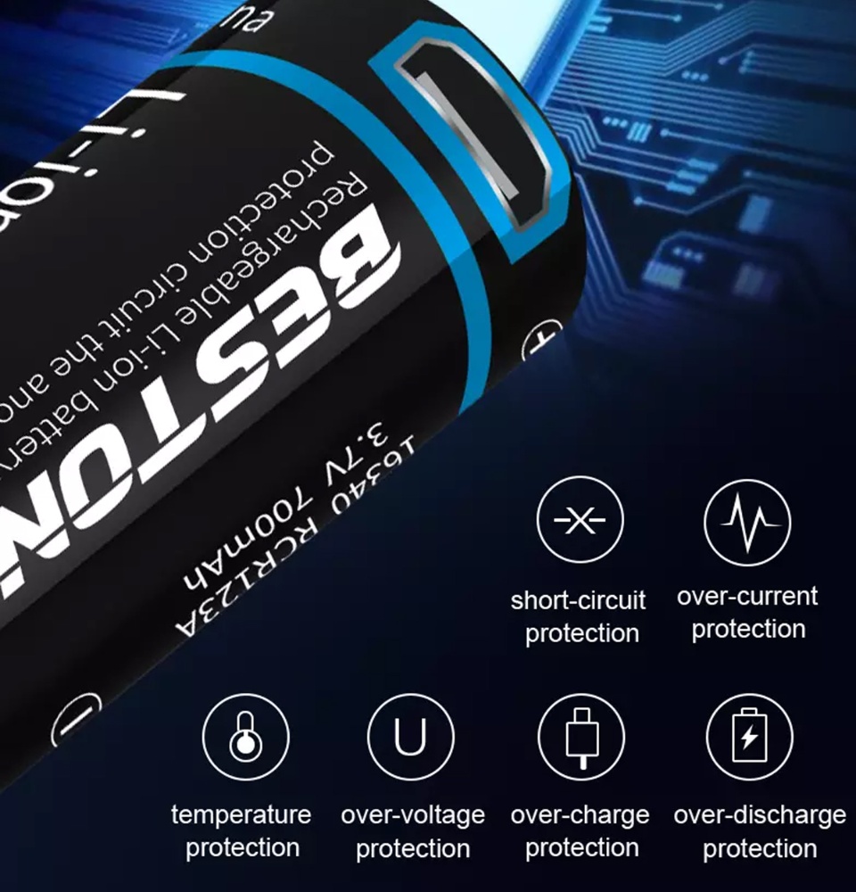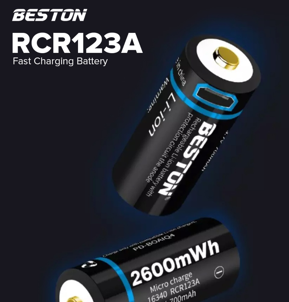 Beston 3.7v 700mAh ICR 16340 RCR123A Li ion Micro USB Rechargeable Battery