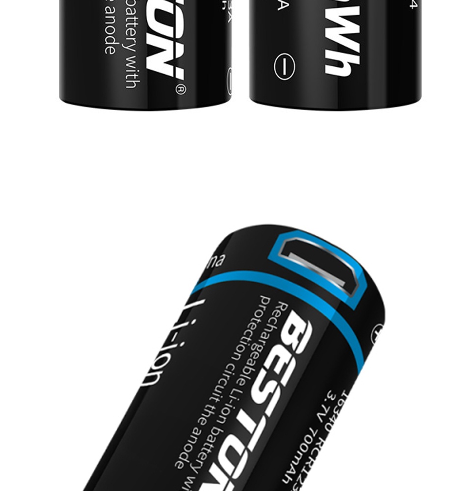 Battery Size: Beston 3.7v 700mAh ICR 16340 RCR123A