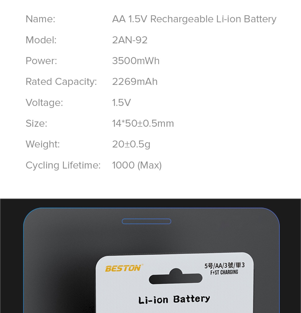 - Name: AA 1.5V Rechargeable Li-ion Battery
