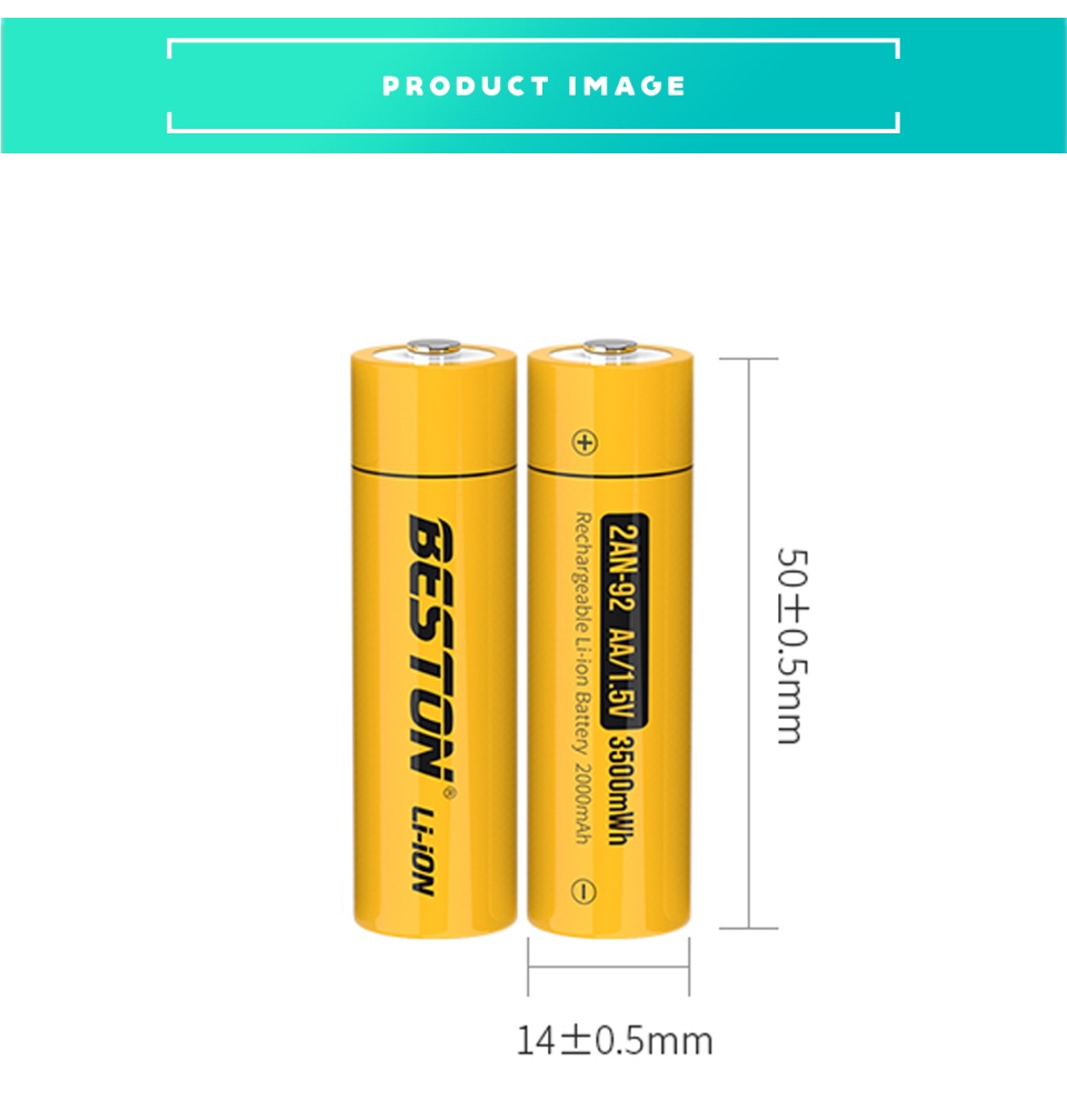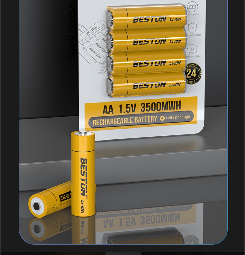 Beston 4pcs AA 1.5V 3500mWh 2AN-92 Li-ion Rechargeable Batteries