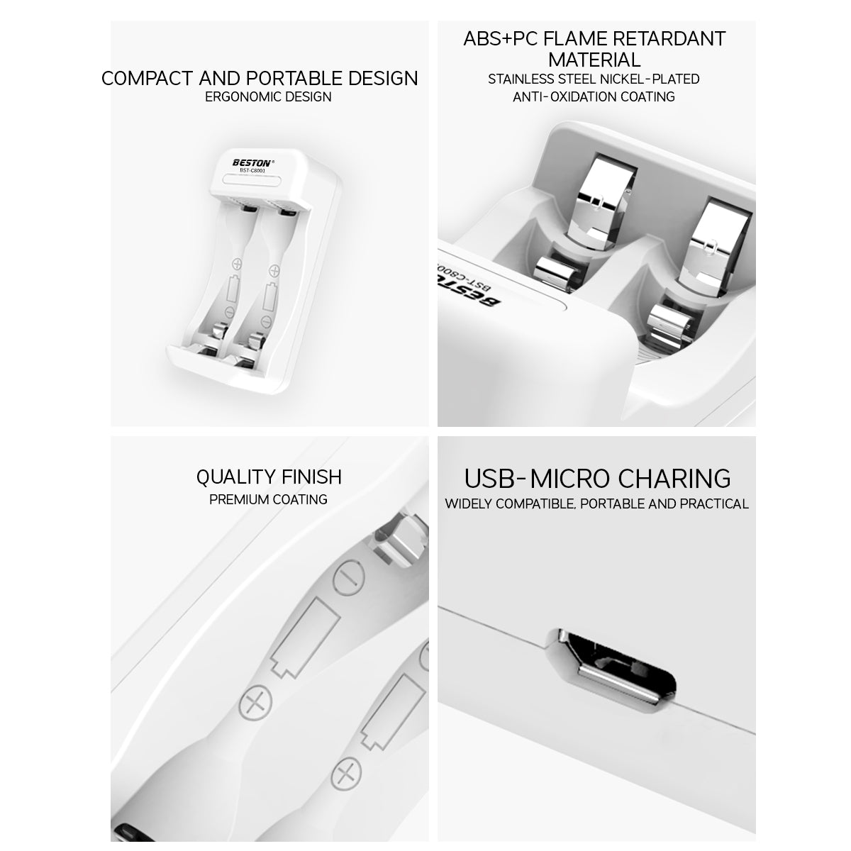 Beston C8001 2-Bay Charger Battery Charger for AA / AAA Rechargeable Battery BST-C8001