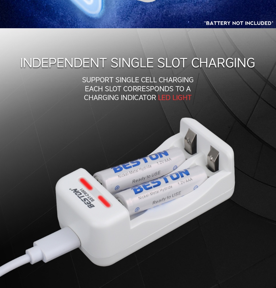 • Beston C8001 2-Bay Charger Battery Charger for AA / AAA Rechargeable Battery BST-C8001