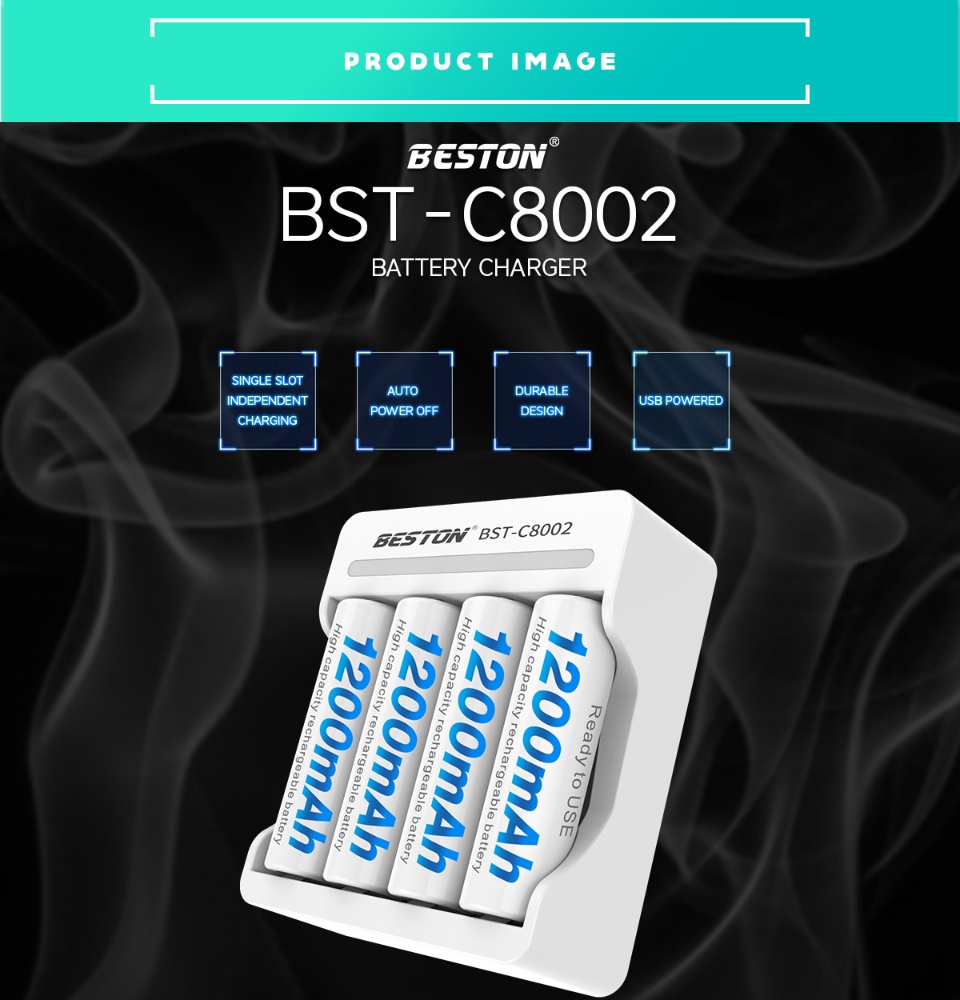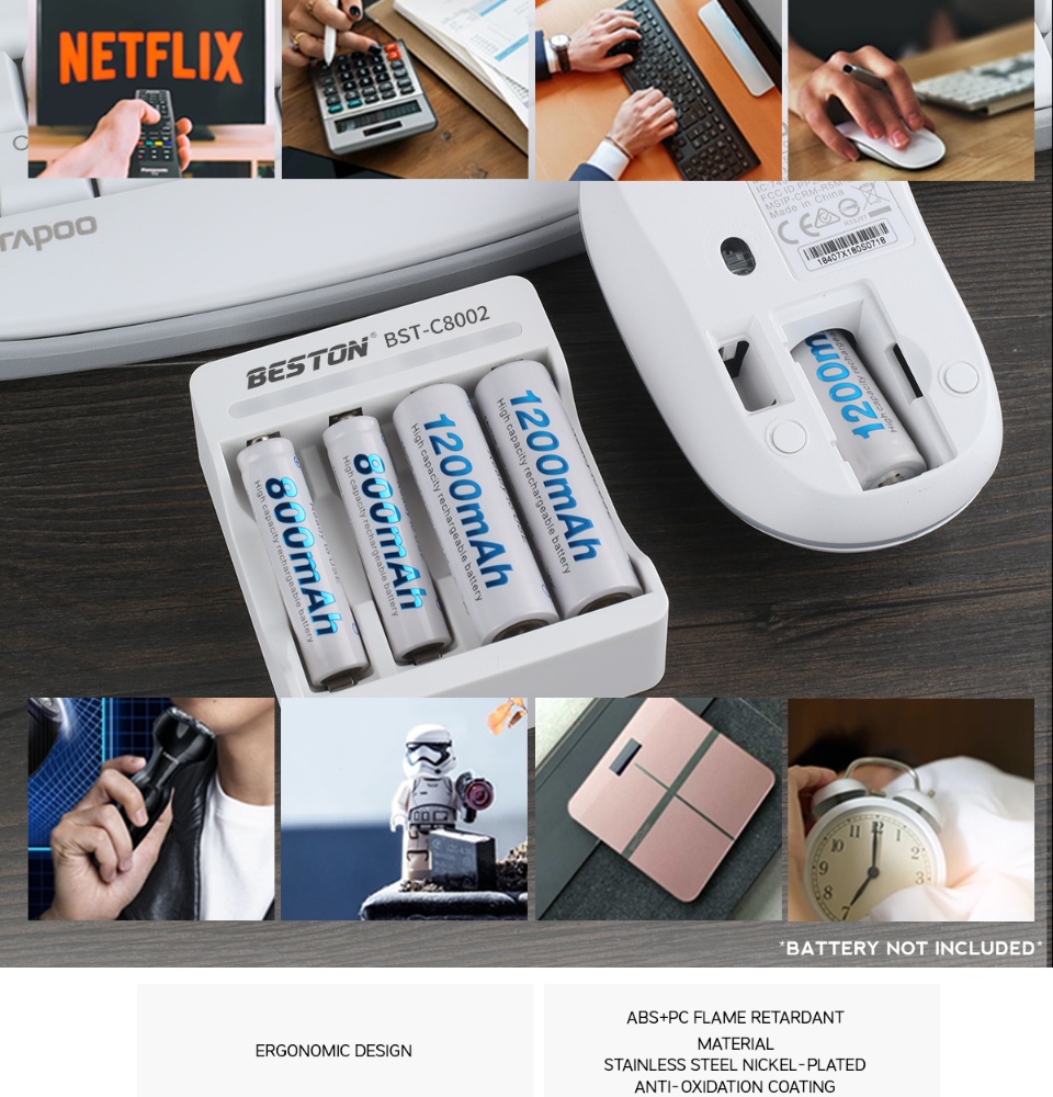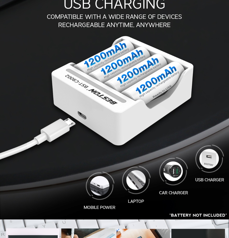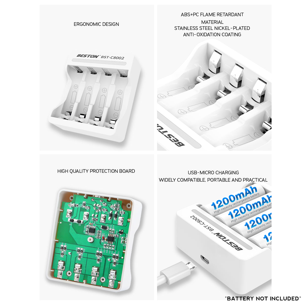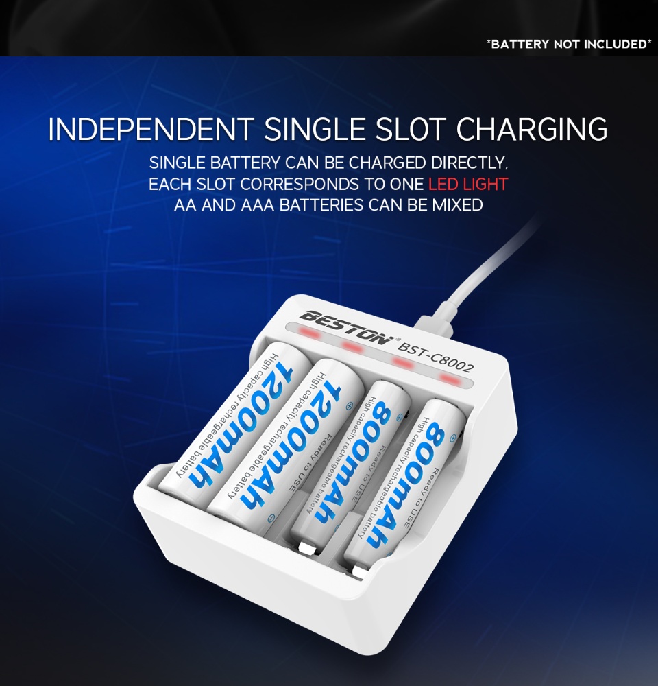 Beston C8002 4-Bay Charger Battery Charger for AA / AAA Rechargeable Battery BST-C8002