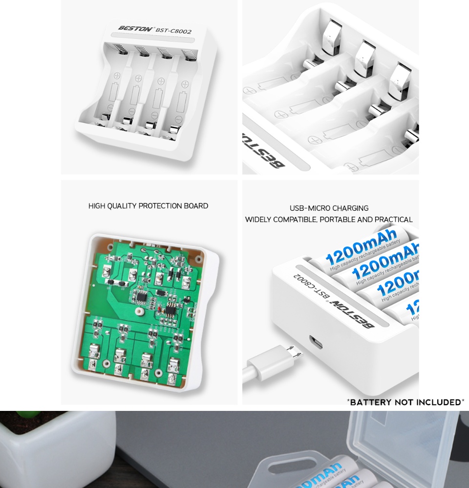 • Beston C8002 4-Bay Charger Battery Charger for AA / AAA Rechargeable Battery BST-C8002