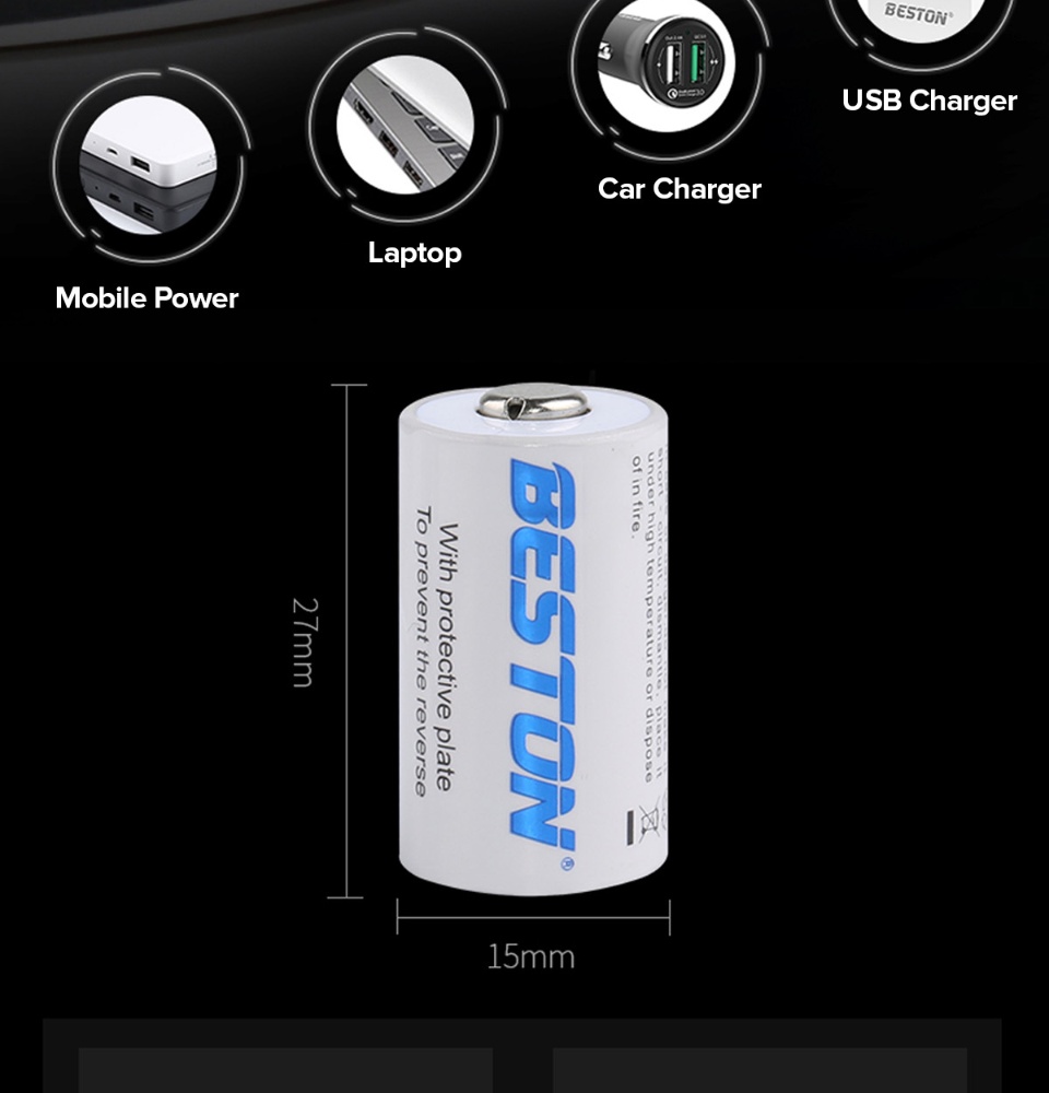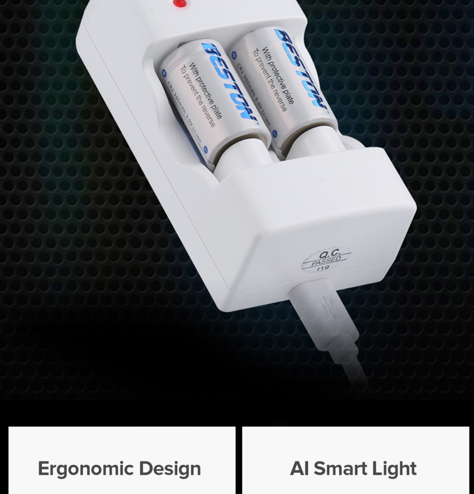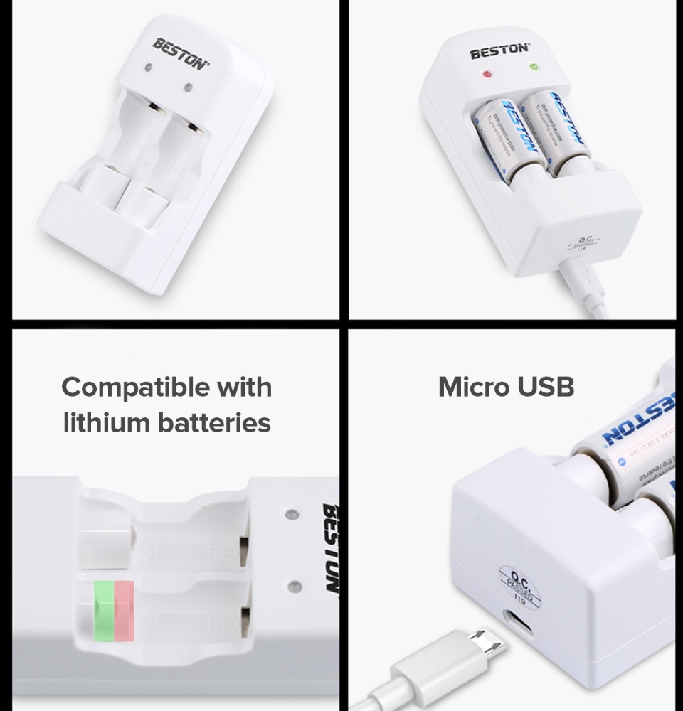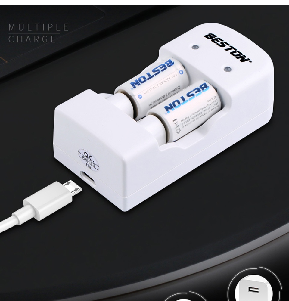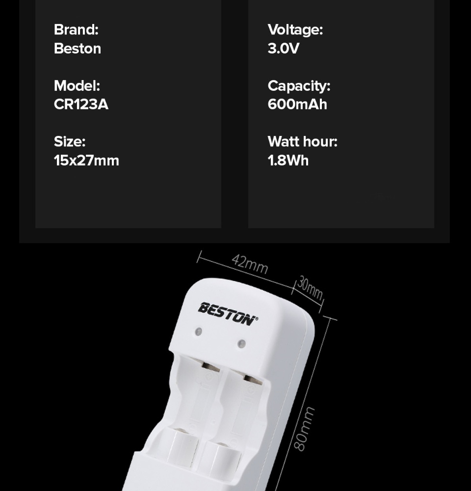• Beston CR123A 650mAh Rechargeable 2x Battery and Charger Set BST-CD643+CR123A