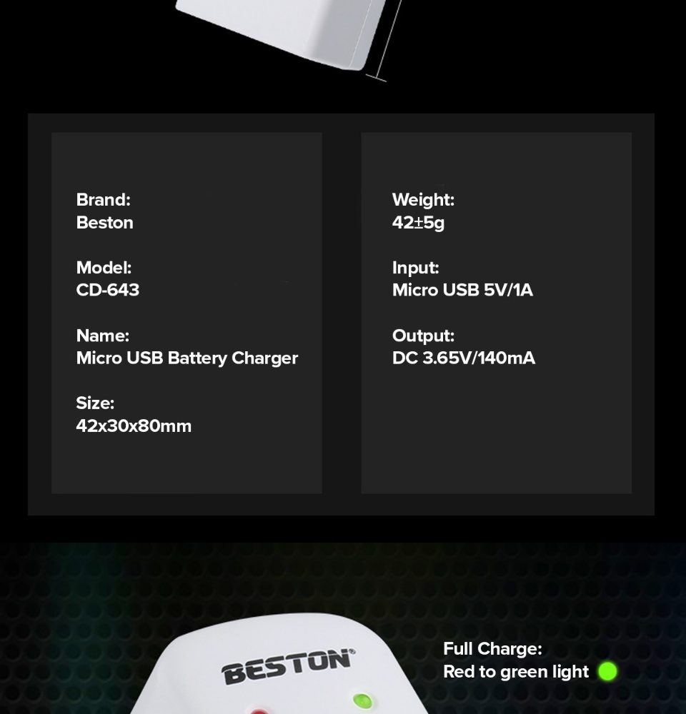 • NOTE: Beston Ni-MH and Li-ion batteries naturally lose charge over time due to its self-discharge feature. Additionally, custom clearance requires low charge batteries.
