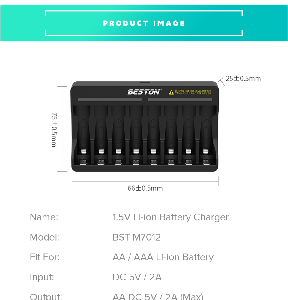 Beston M7012 8 Bay AA/AAA 1.5V Li-ion Battery Charger BST-M7012