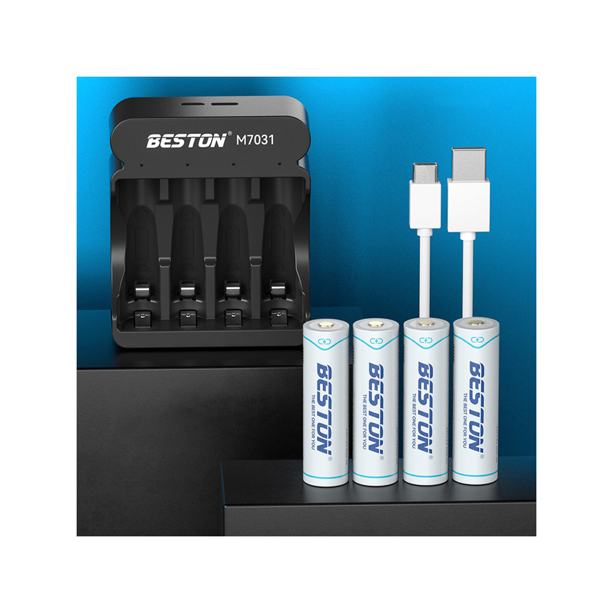 Beston M7031 4 Bay 1.5V AA AAA Lithium Li-ion Smart LED Battery Charger Type C