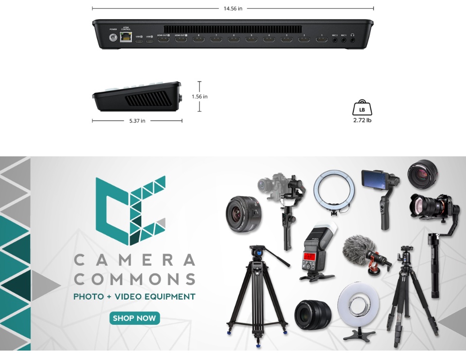 • Multiview Monitoring - You can configure the HDMI output for multiview with 4, 7, 10, 13, up to 16 views including Program, Preview, eight HDMI inputs, SuperSource, clean feed, media player, streaming status, recording status, and audio meters.