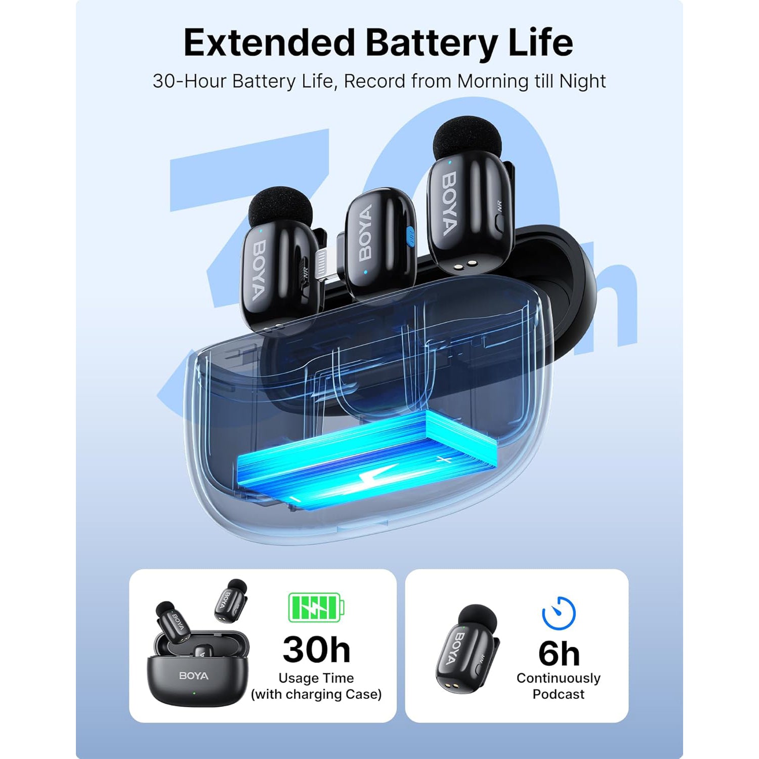 - Designed with unmatched portability for the content creator on the go, the black BOYA mini Tiny Wireless Microphone System features ultracompact transmitters weighing just 0.2 oz while improving your audio quality in your next vlog or livestream.