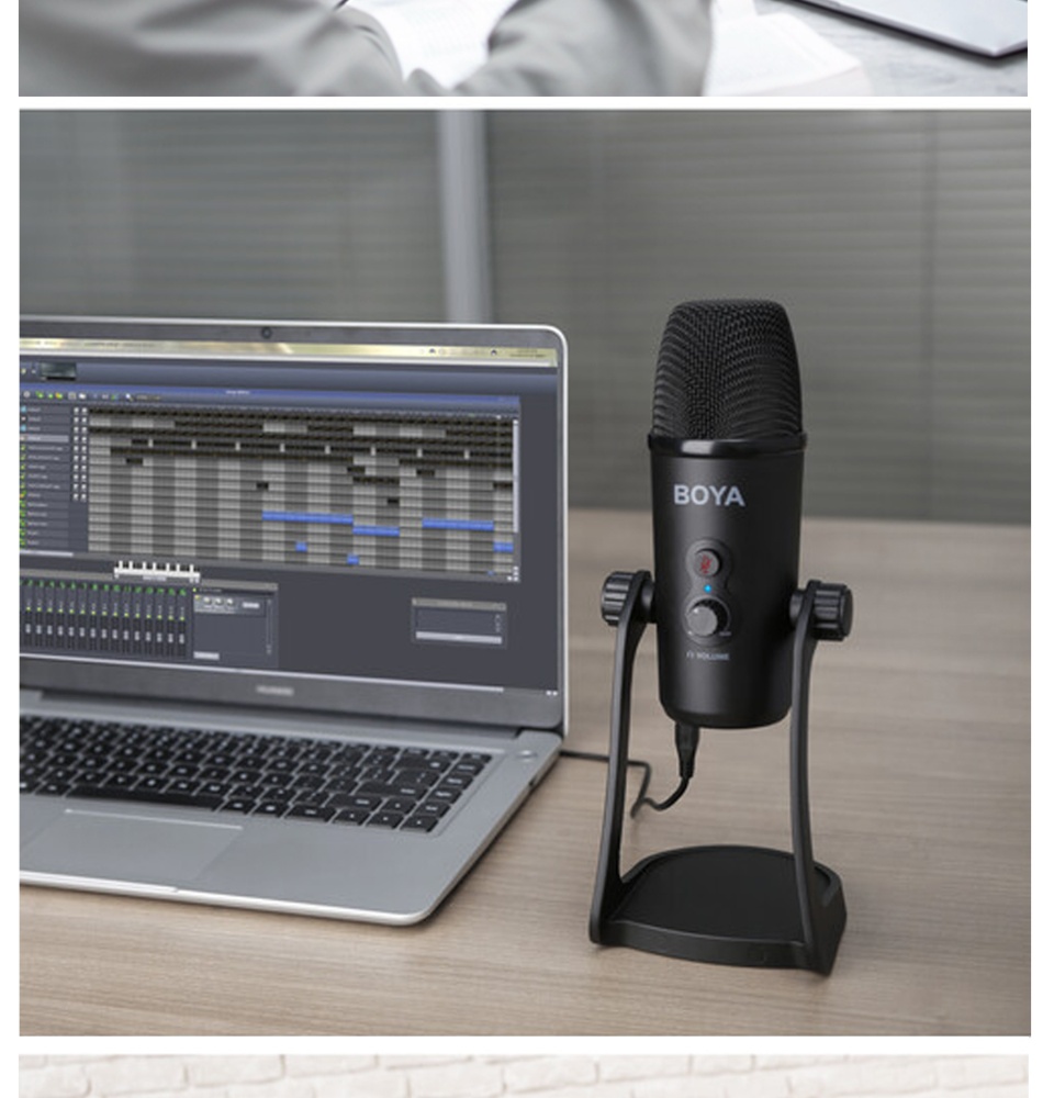 - With Triple-capsule and Durable all-metal construction design, BOYA BY-PM700 includes a desk stand that can adjust the microphone in various desired angles, also the functionality of folding the mic down for storage and transport as well.