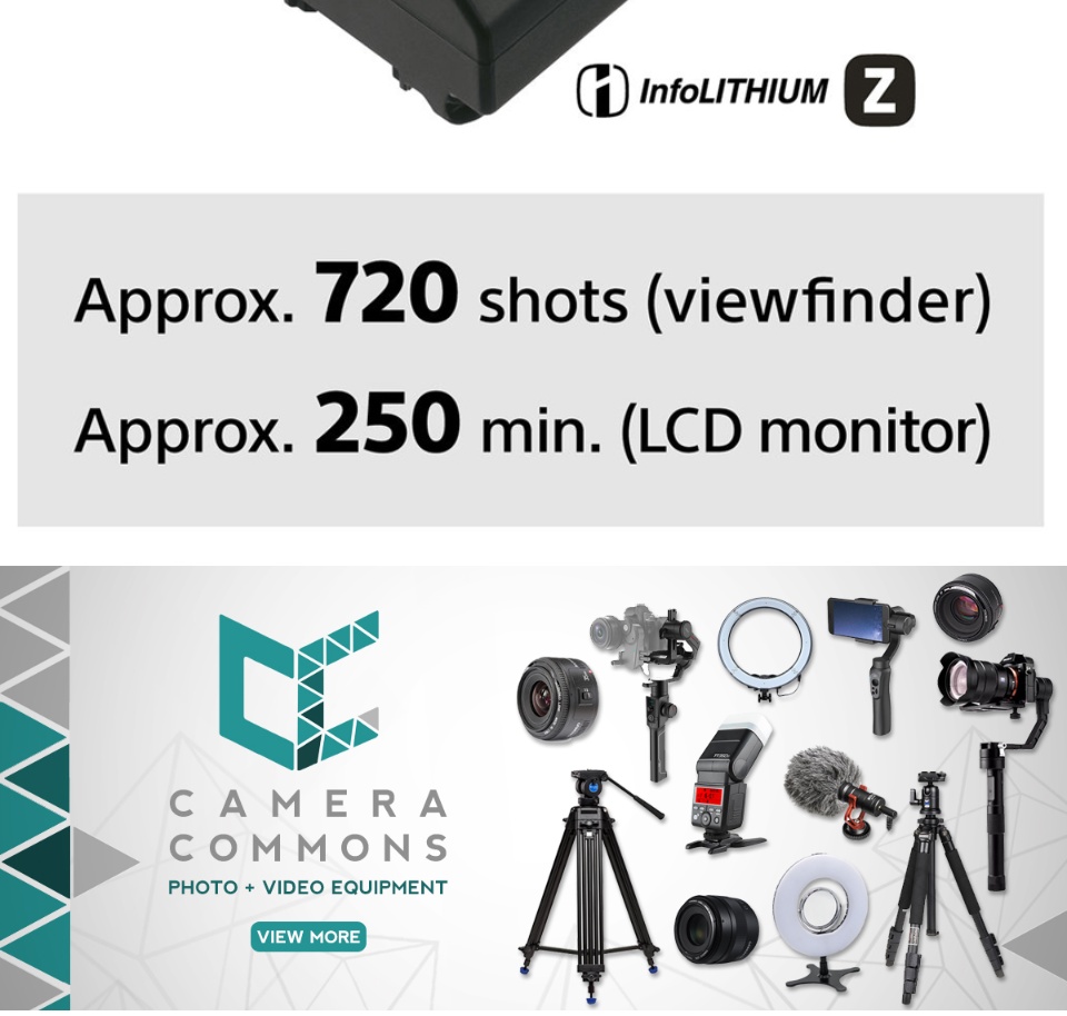 - The included NP-FZ100 rechargeable lithium-ion is rated for approximately 810 shots per charge when working with the LCD screen.