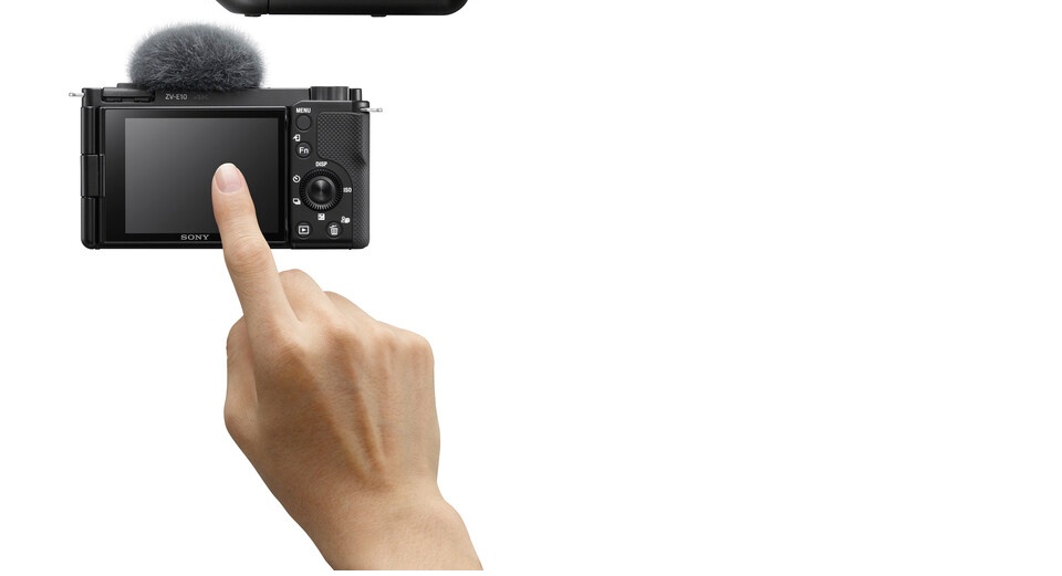 • The body design is reminiscent of Sony's other Alpha E-mount cameras and features an intuitive control layout along with the functional 3.0" vari-angle touchscreen LCD for intuitive settings control and framing. With audio being a main concern of vlogging and creative content, the ZV-E10 focuses on this aspect of recording by including a 3-capsule directional mic into the camera design as well as incorporating both 3.5mm mic and headphone ports and having the top Multi Interface shoe support a digital audio interface for improved audio quality.