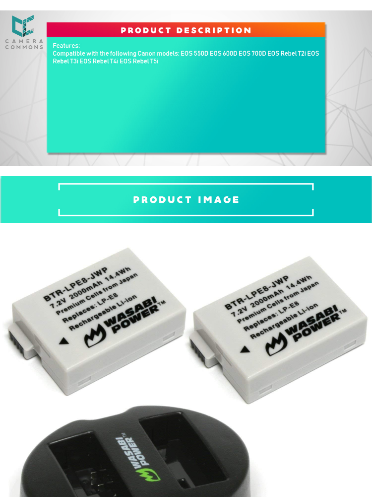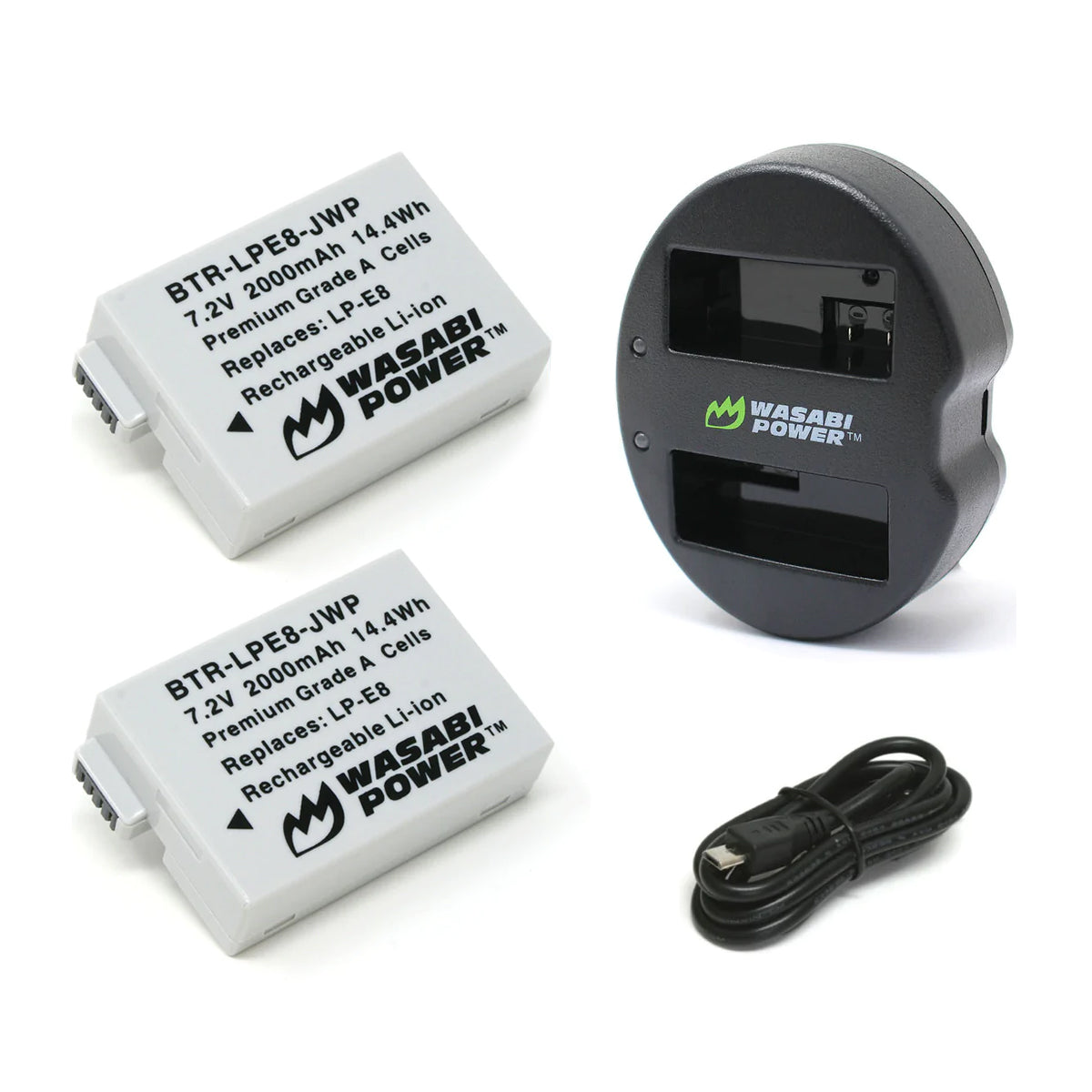 - This Wasabi Power LPE8 kit includes 2 batteries and one dual USB charger. All items meet or exceed OEM standards.