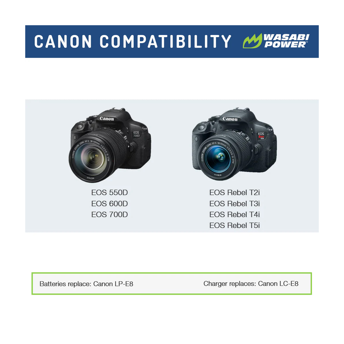Wasabi Power LP-E8 Dual Kit Battery Charger for Canon Cameras LPE8