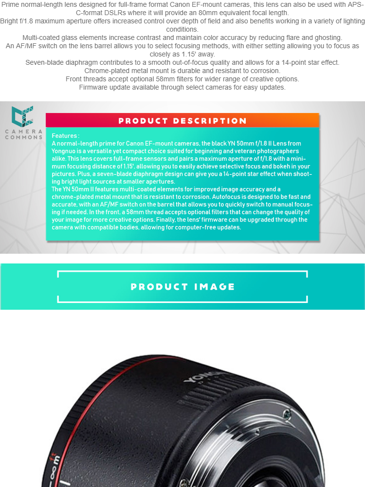 Yongnuo YN50mm f/1.8 II Lens for Canon EF DSLR Cameras 50mm Version 2