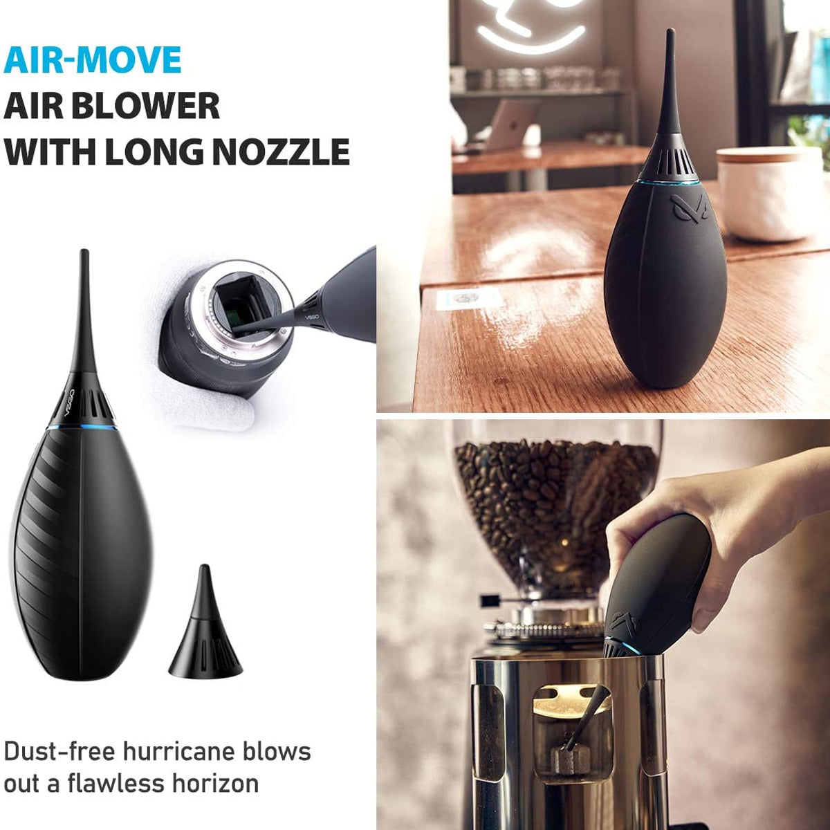 - Air-move air blower with long nozzle: designed specially for removing the dust particles on the surface of the lens, hot-shoe and zoom ring. Which award the 2019 German Red Dot Design Award.