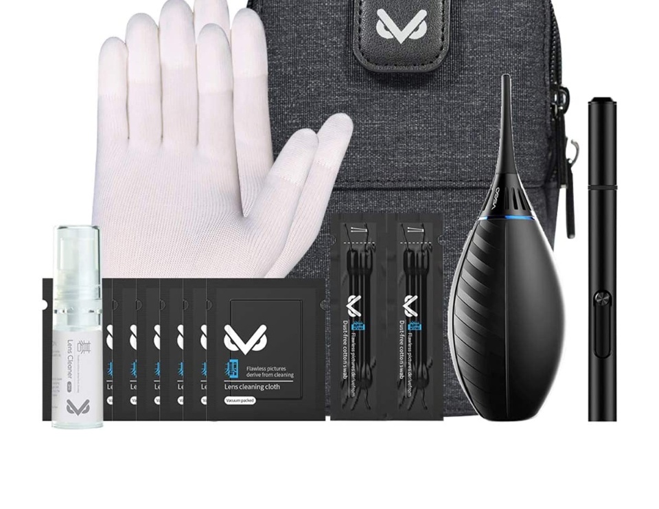 VSGO VS-A3E Warp-up Camera Cleaning Kit Portable Bag Air Blower Lens Cleaning Pen Spray Cotton Swab Cloth for Camera Lens Optical Optical Phone