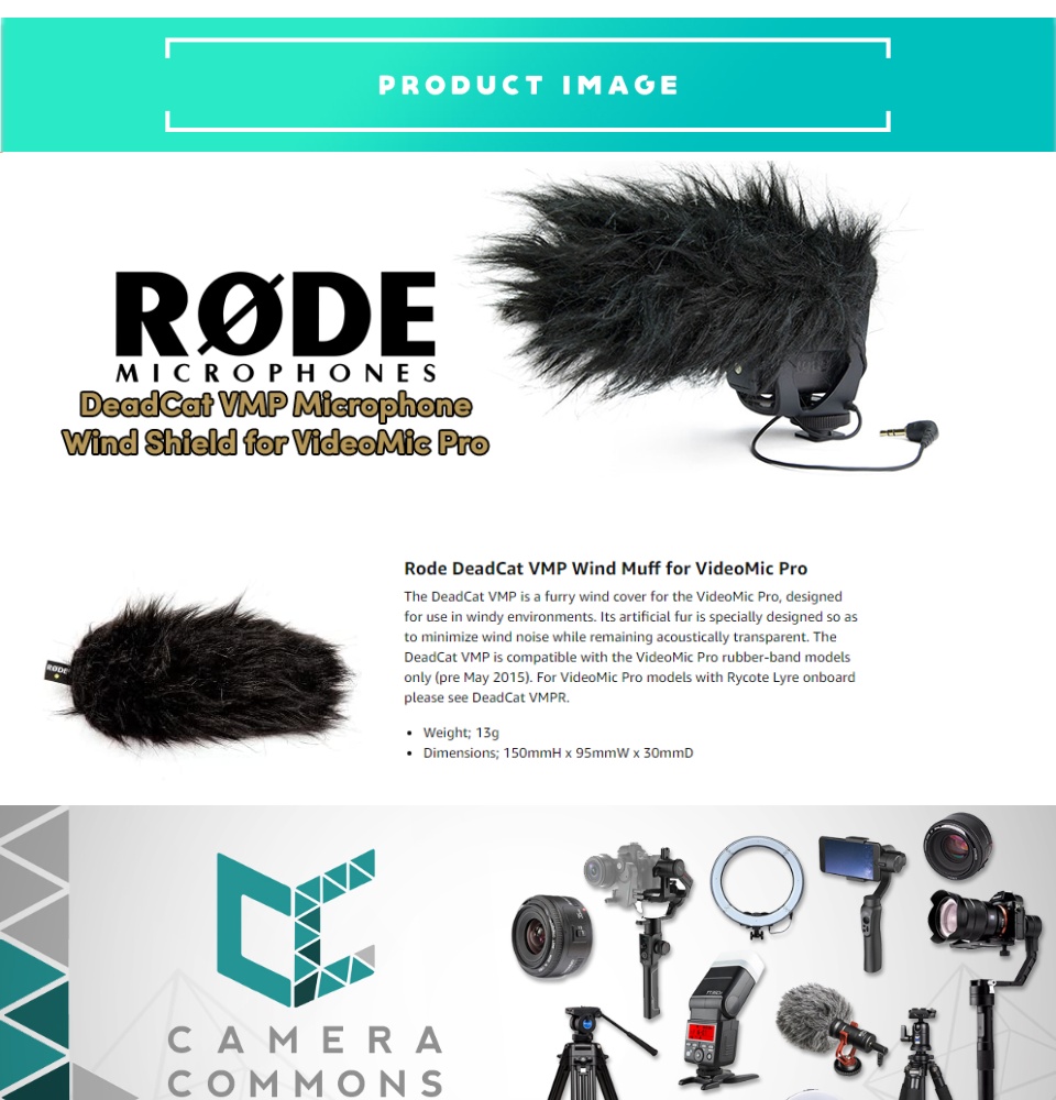- The DeadCat VMP is a furry wind cover for the VideoMic Pro, designed for use in windy environments. Its artificial fur is specially designed so as to minimise wind noise while remaining acoustically transparent.