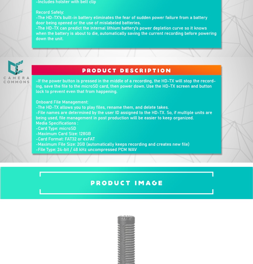 - Records 24-Bit / 48 kHz WAV to MicroSD