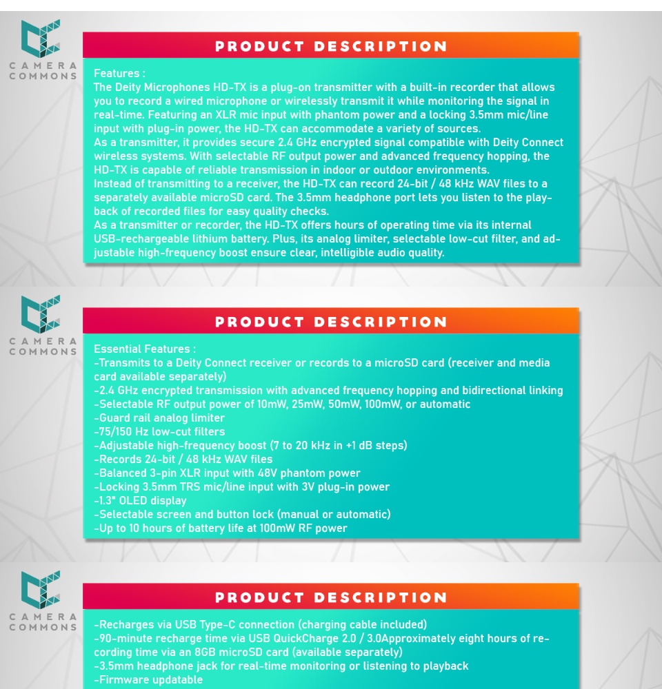 Deity Microphones HD-TX Plug-On Transmitter with Built-In Recorder (2.4 GHz)