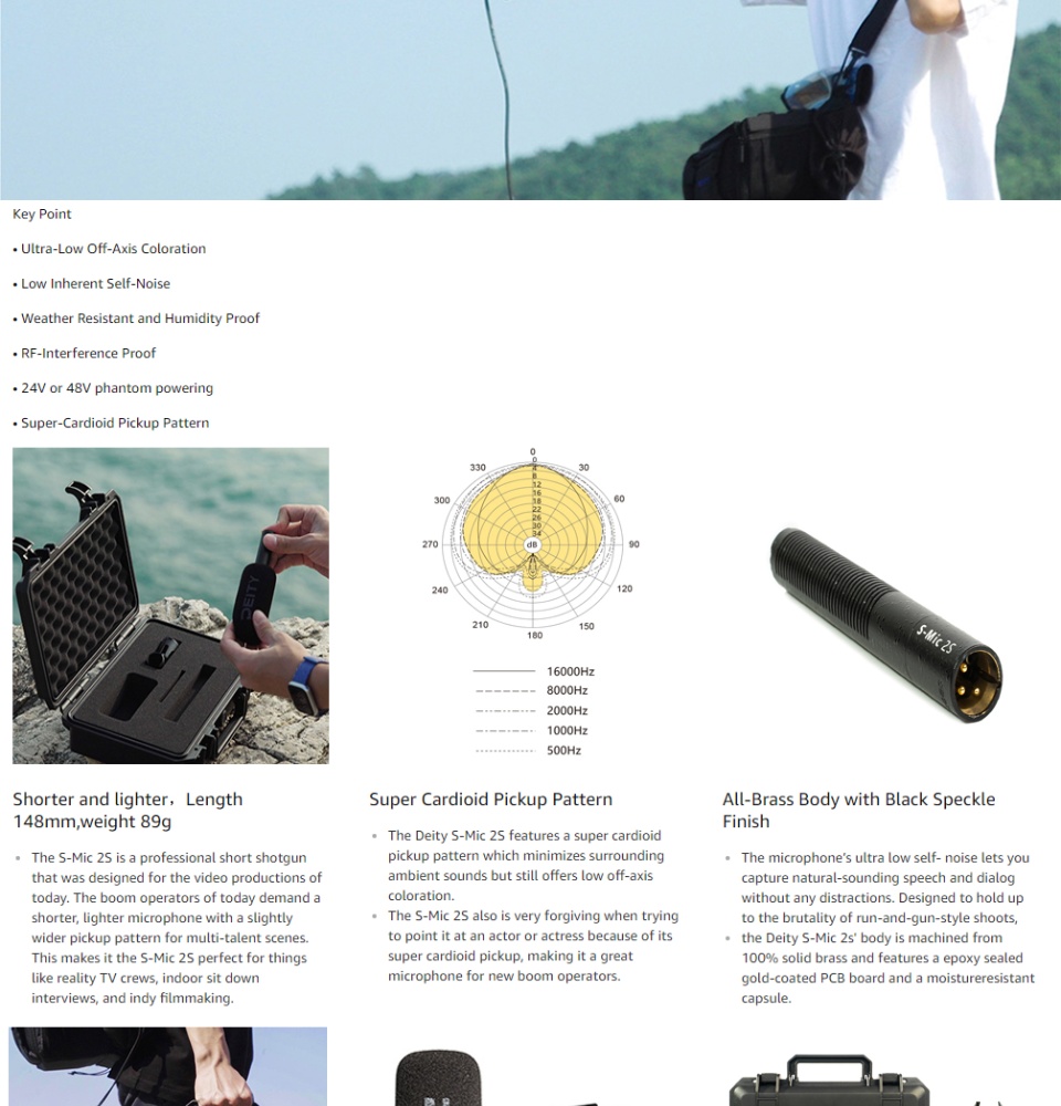 - The Deity S-Mic 2S features a super cardioid pickup pattern which minimizes surrounding ambient sounds but still offers low off-axis coloration, lets you capture natural-sounding speech and dialog without any distractions