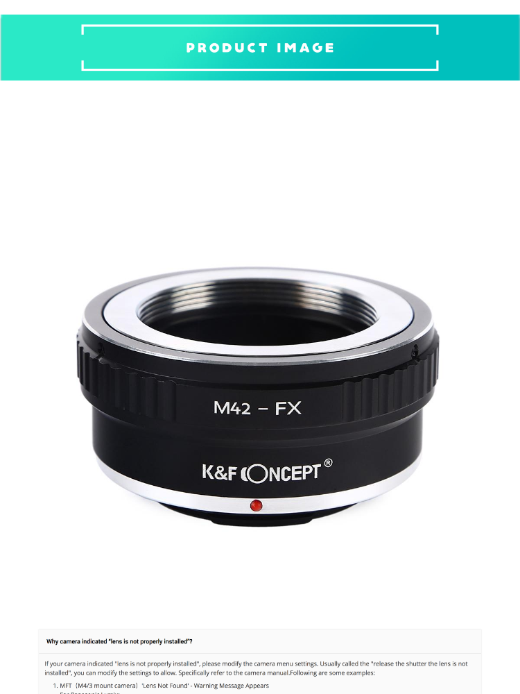 • K&F Concept M42 Lenses to Fuji X Mount Camera Adapter M42-FX