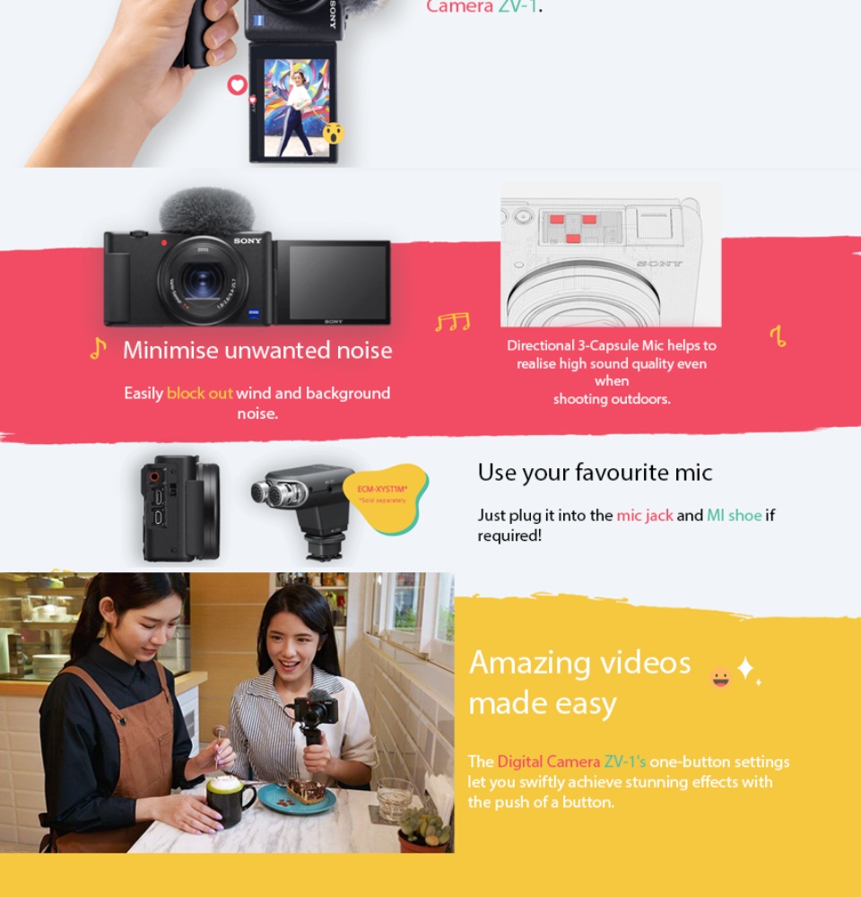 • Sony ZV-1 Digital Compact Camera 4K Video Vlogging ZV1