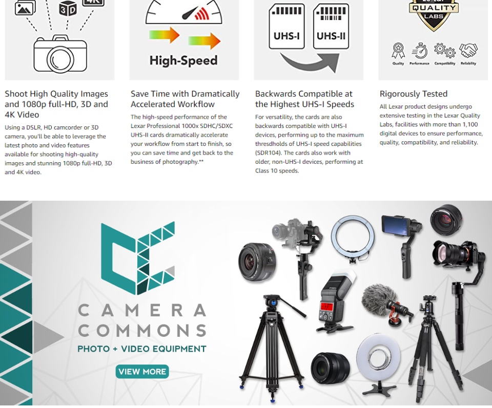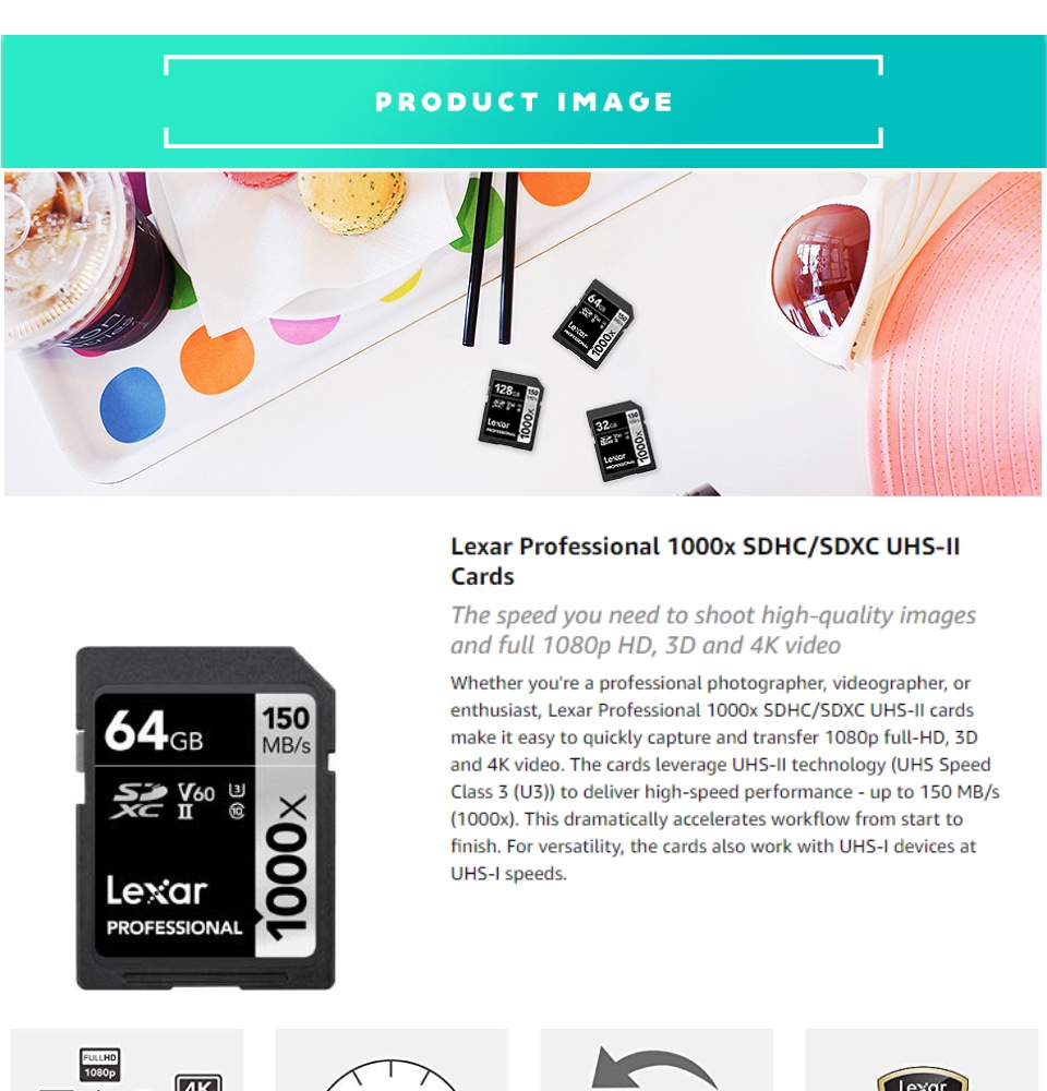 • Lexar Professional High-Performance 1000X SDXC UHS-II Card (32gb, 64gb, 128gb)