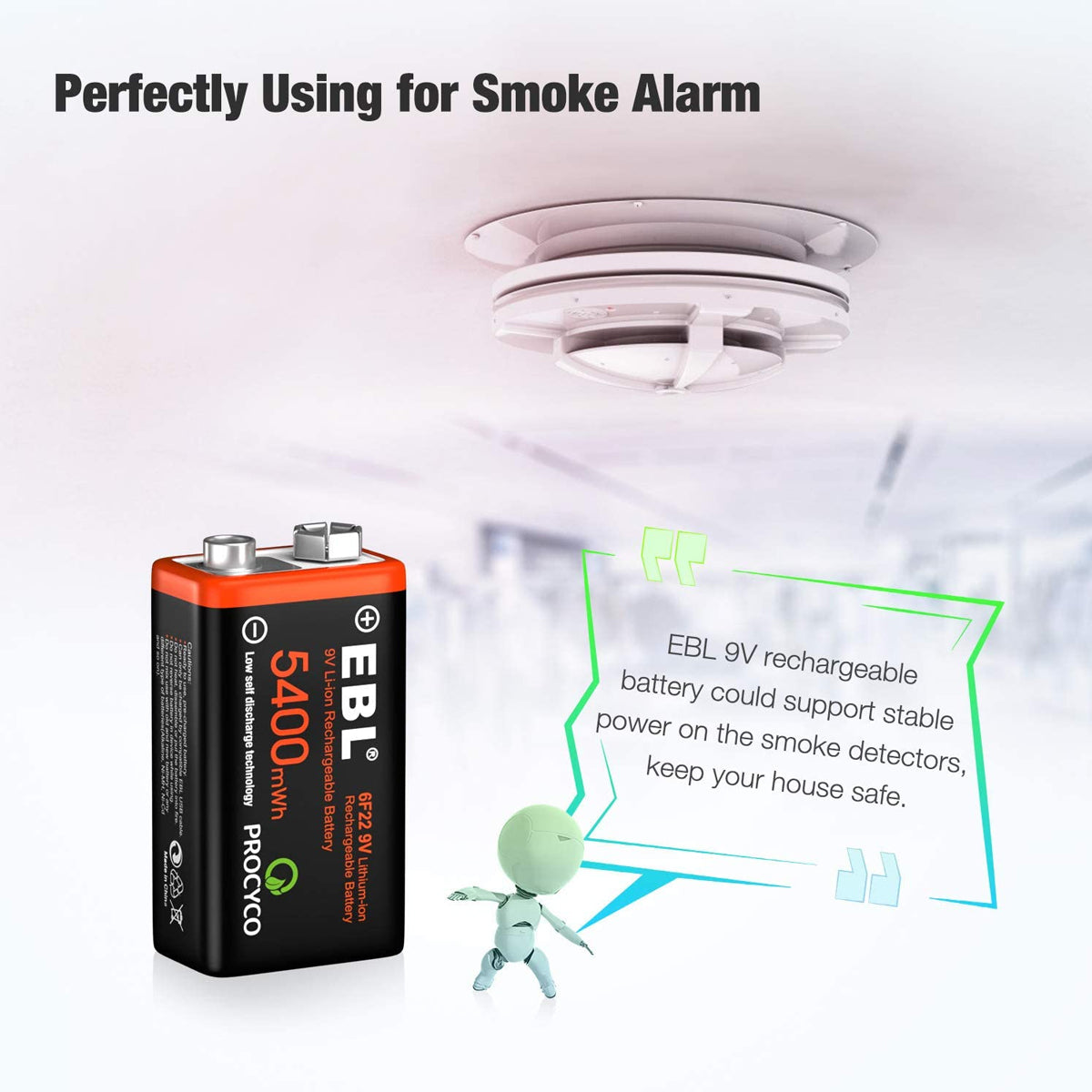 - High Performance: EBL Li-ion batteries with 5400mWh capacity, support stable power and longer working time for high frequently used devices, such as smoke/fire alarms, wireless microphone, toys, GPS, home security devices, medical devices etc.