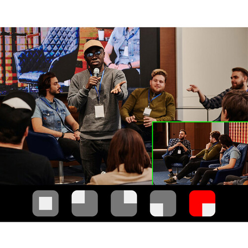 One of the benefits of using L4 with a multi-camera setup is that you can use the Picture-in- Picture function to display two inputs at the same time. Any of the five inputs can be used for a Picture-in-Picture effect over the program output, with selecting your favourite mode (5 modes for optional). You can also exchange the sub picture and main picture quickly.
