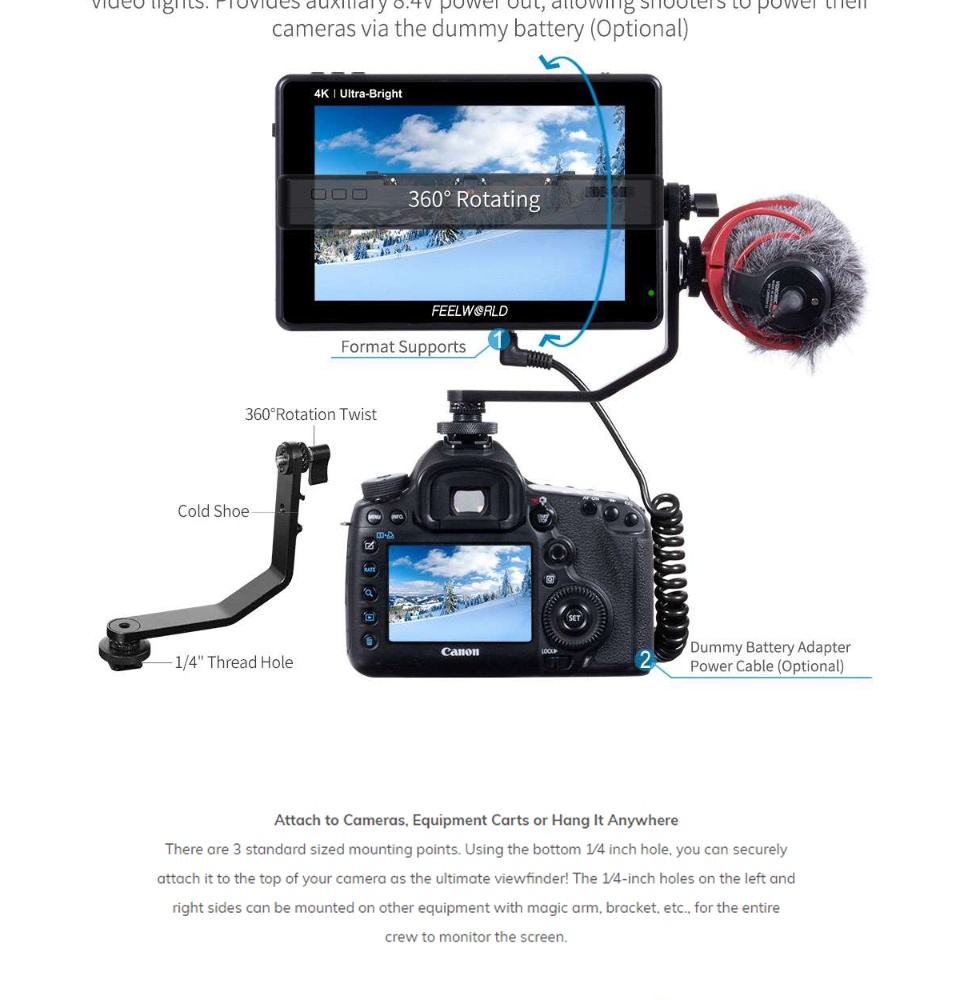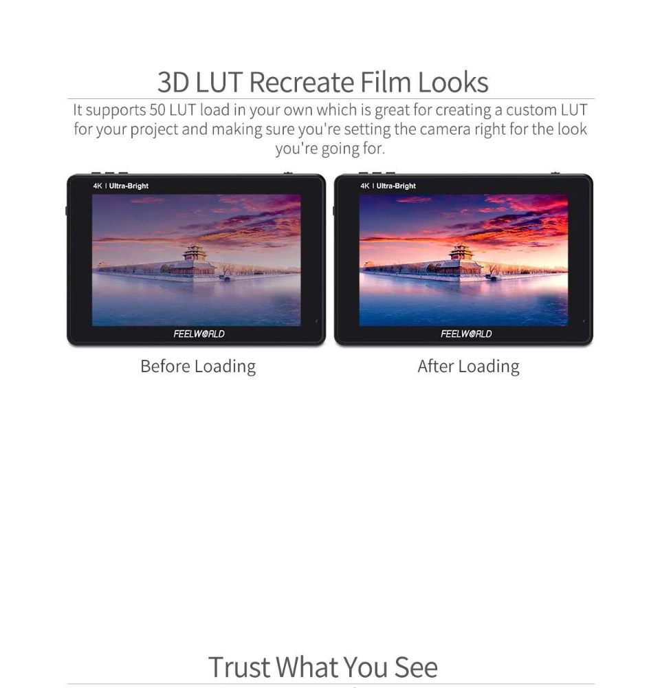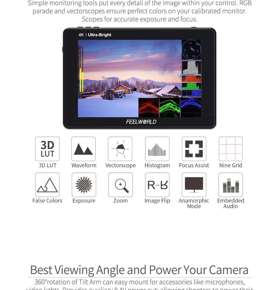 • FEELWORLD LUT7 LUT7S 7" 3D LUT 4K HDMI Monitor 7 inches for Cameras Studio Videography
