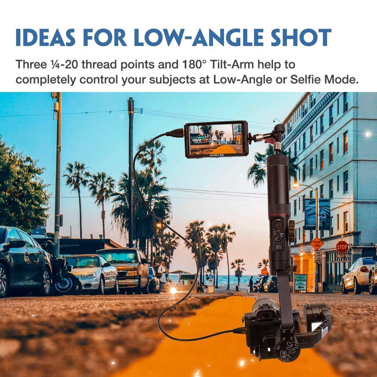 - ?Smallest Monitor with Tilt Arm?- The portable MA5 4K DSLR monitor weighs only 4.9 oz, mounts with a swivel tilt arm for selfie mode or different monitoring angles, and three 1/4 thread points for wide applications.