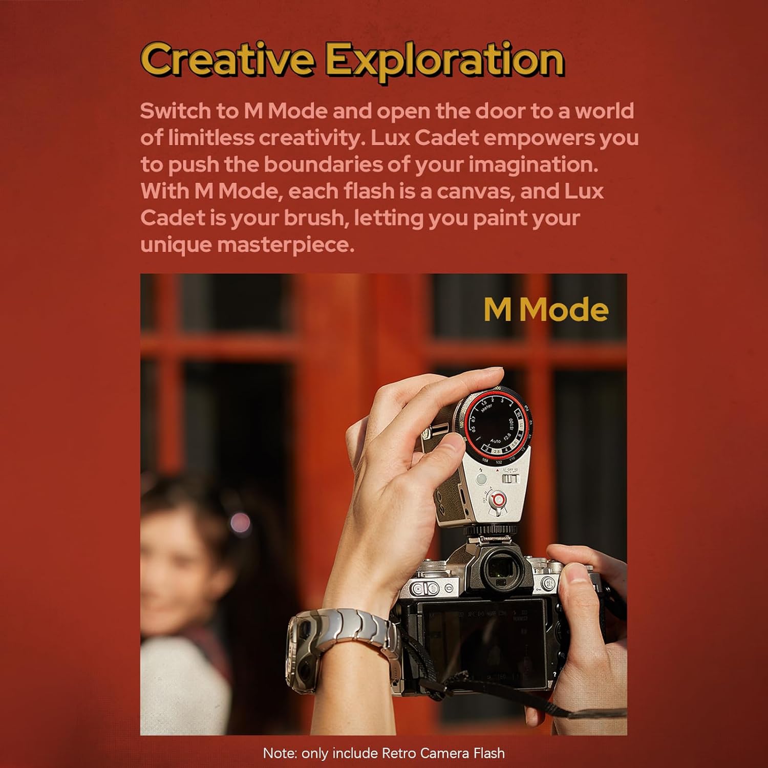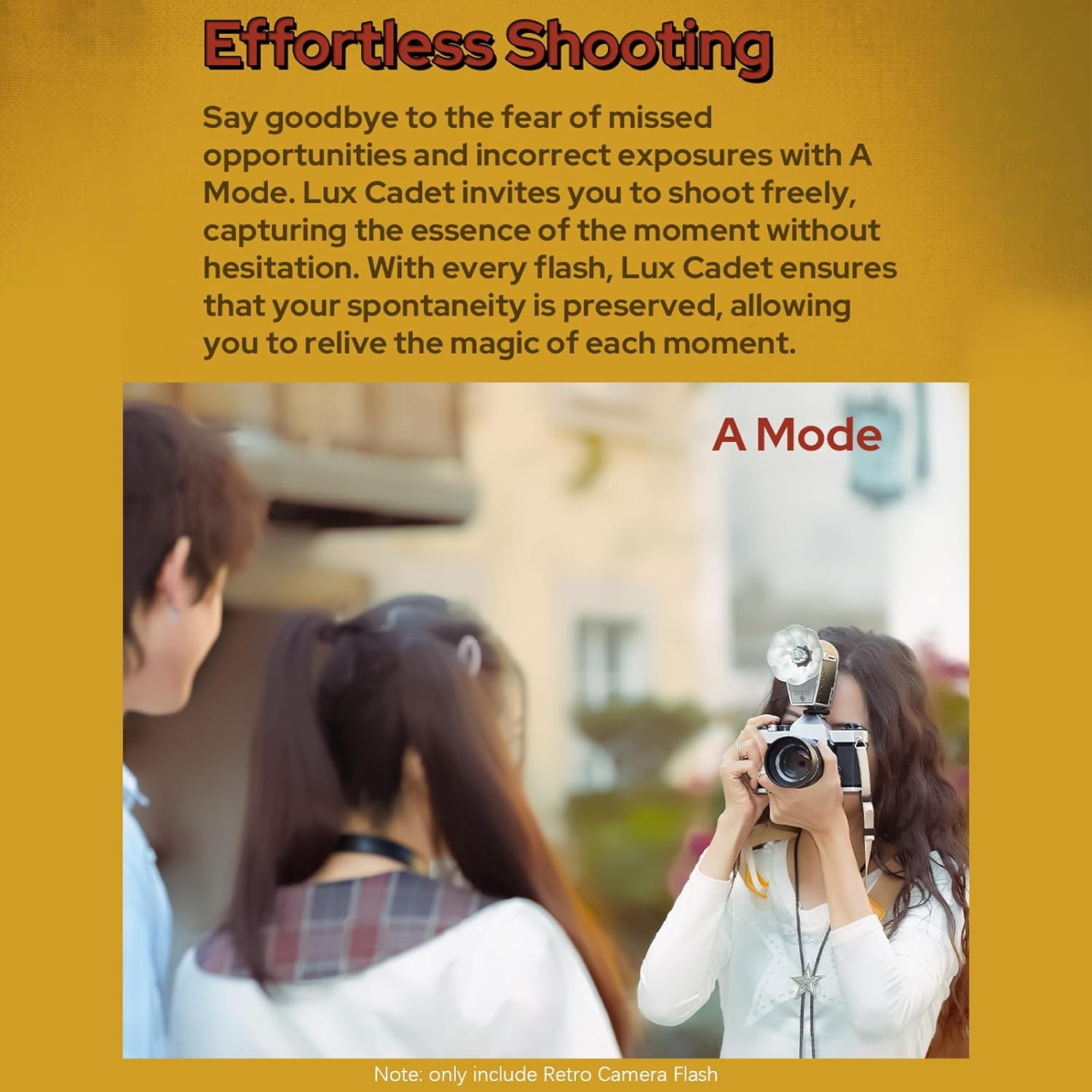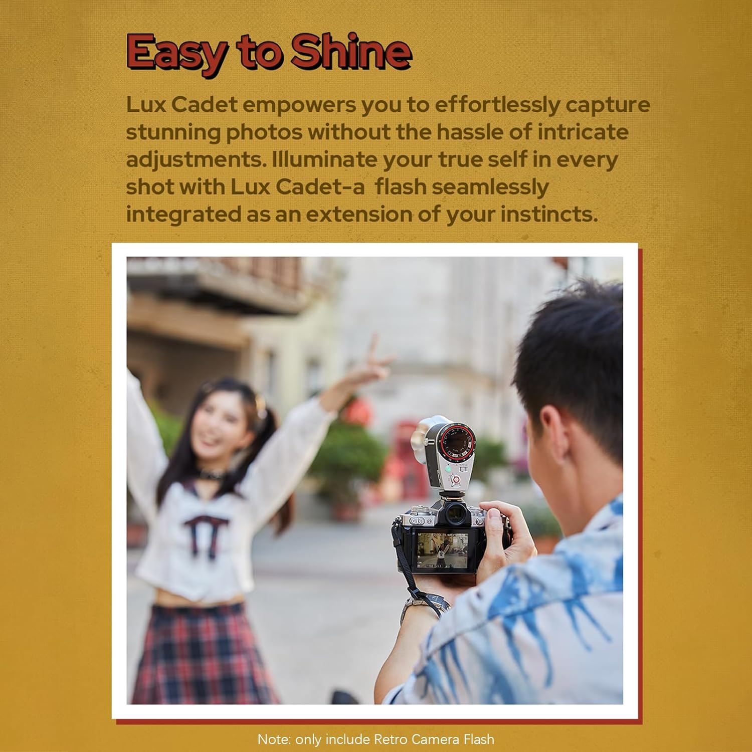 - Perfect for those who want to add vintage flair to their contemporary photo setup, the GODOX Lux Cadet Retro Style Flash is a camera-mountable light source that delivers seven stops of flash power. Its design, inspired by flash units of yore, features a retractable, petaled reflector and a simple dial that correlates ISO with apertures, power levels, and shooting distances. The flash also has an auto mode that defaults to f/2.8 at ISO 100.