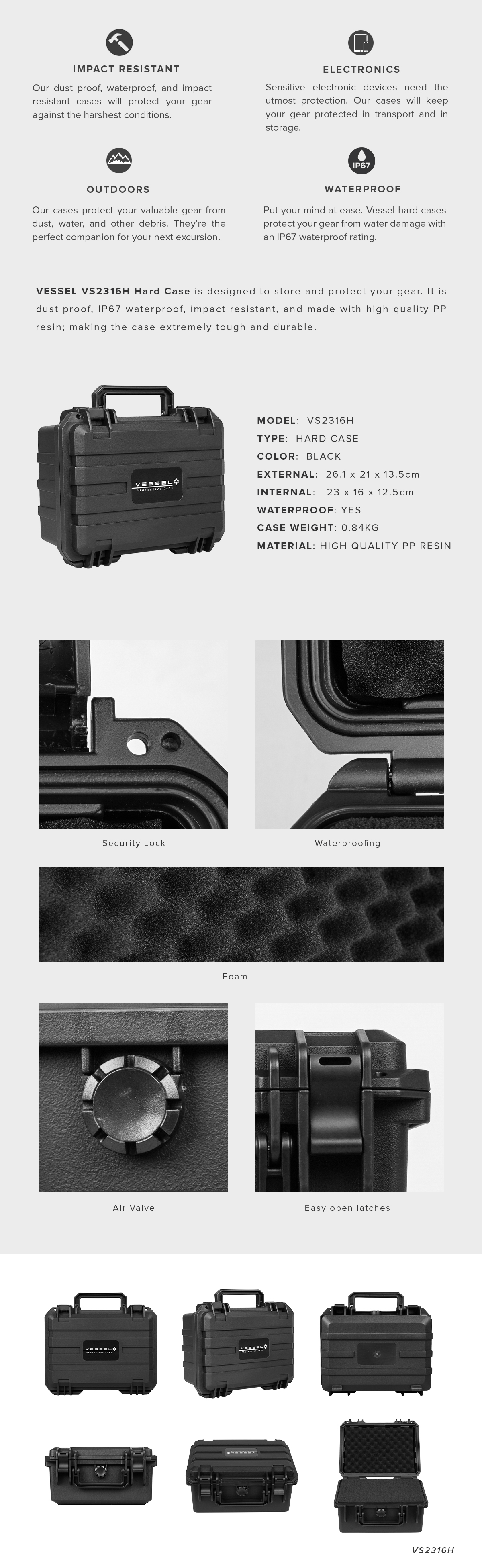VESSEL DEFENDER VS2316H Portable Hard Case Waterproof for Photography, Equipment, Instruments and other devices