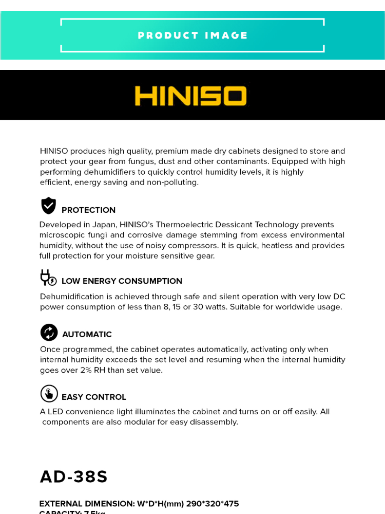 HINISO AD-38S 38L Electronic Automatic Digital Control Dry Box Cabinet Storage for Camera Gears