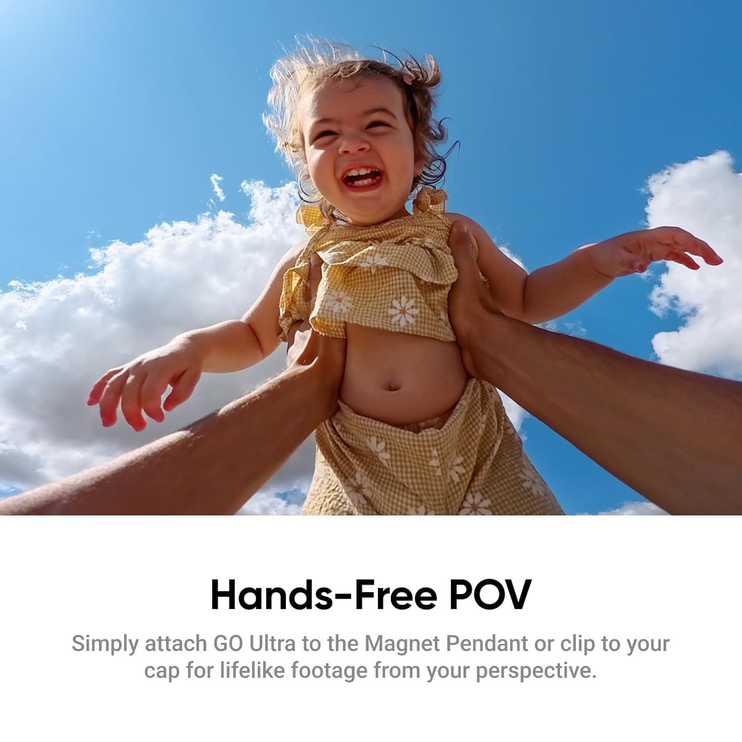 - The GO Ultra can shoot up to 4K60 video and 50MP with its increased 1/1.28" image sensor. This standard bundle version includes a magnet pendant, magnetic easy clip, and quick release safety cord for mounting peace of mind.