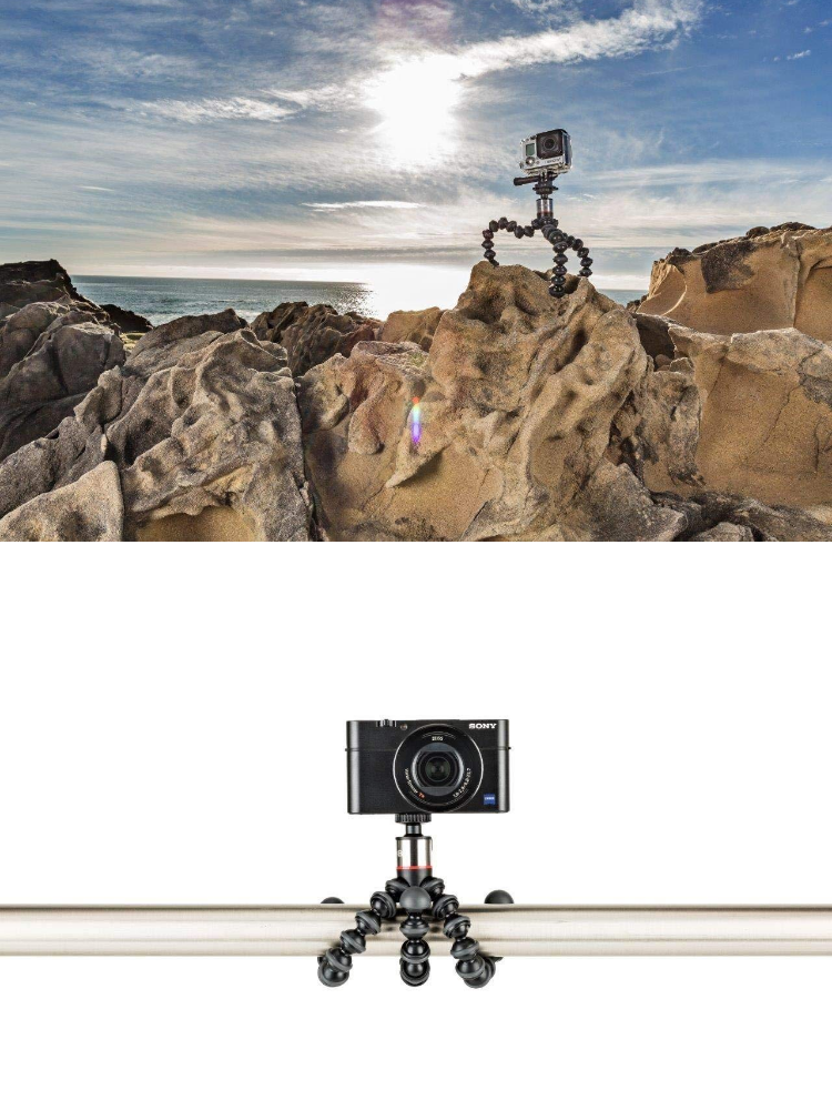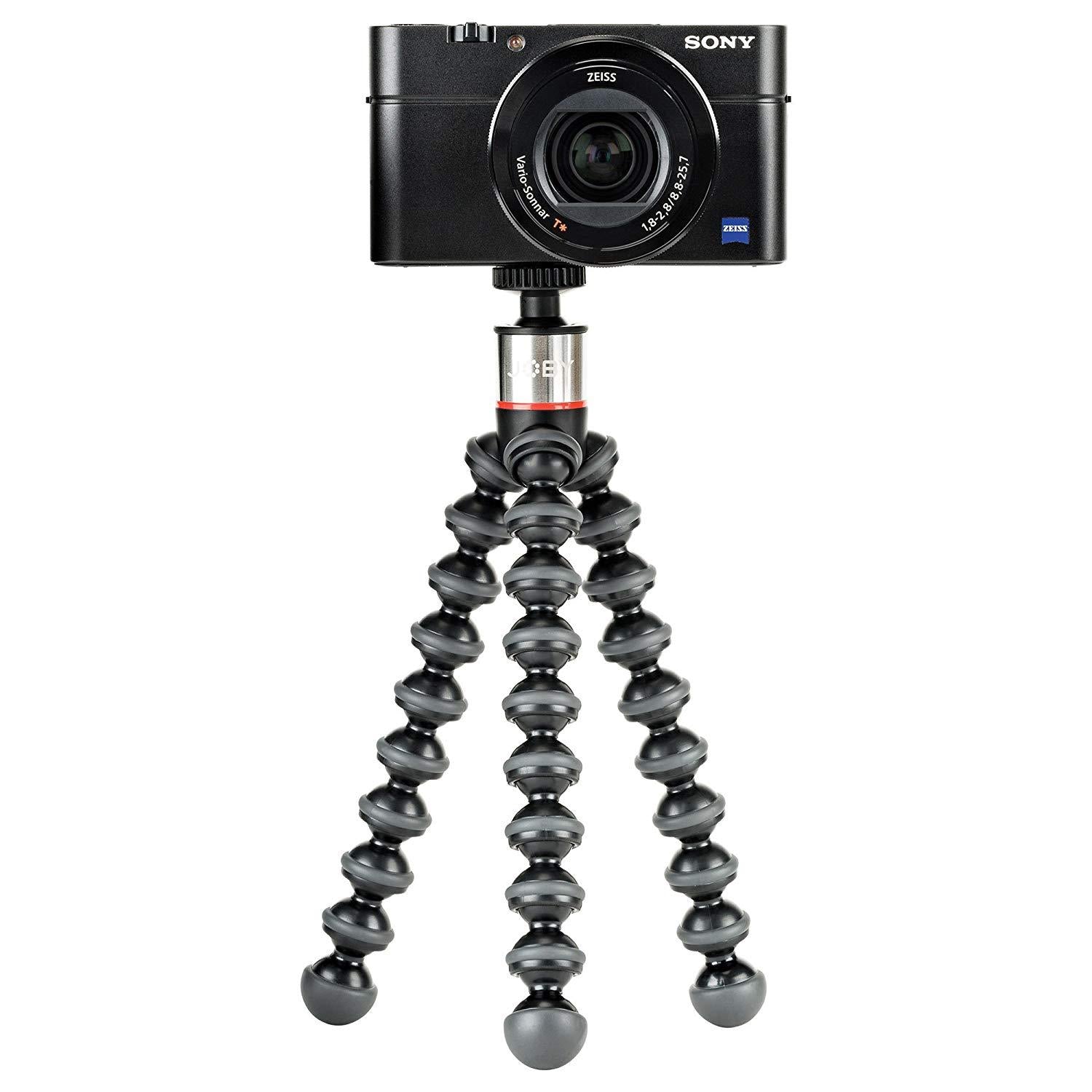 - A compact and versatile option for supporting your gear, theGorillaPod 500 Flexible Mini-TripodfromJobyhas legs made up of several joints that enable you to wrap it around objects and adapt it for use on uneven ground. With a load capacity of 1.1 lb, it can reliably hold most point-and-shoot cameras and video lights. A weight of only 2.8 oz makes this tripod easy to carry while travelling, allowing you to fit it in a small bag or even keep it in your pocket.