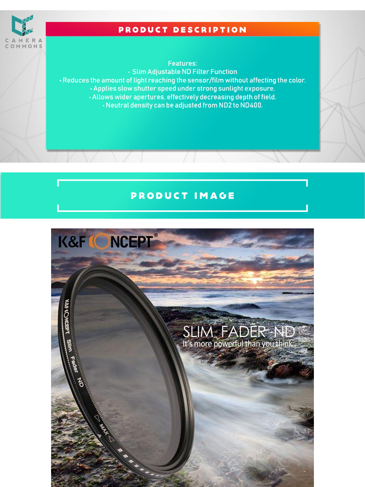 K&F Concept ND2-400 55mm Neutral Density Fader Variable ND Filter Adjustable ND2 ND4 ND8 ND16 ND32 to ND400
