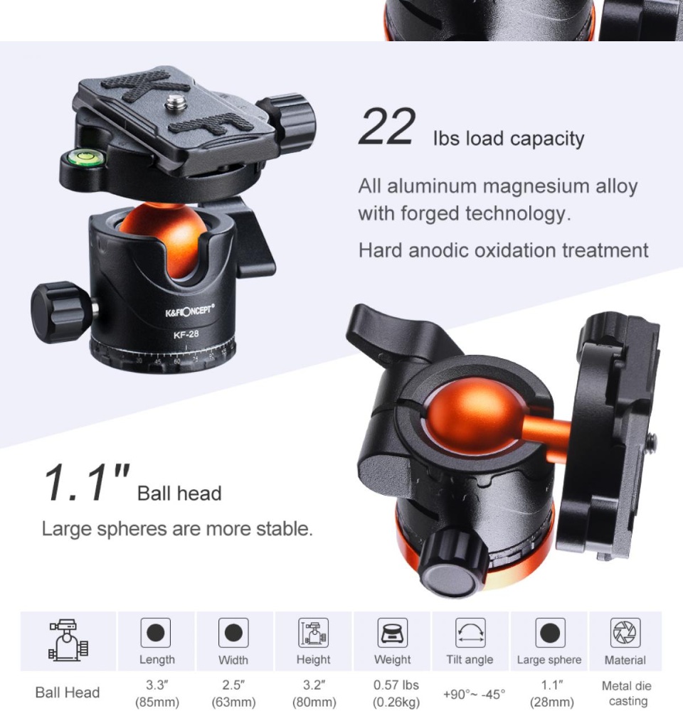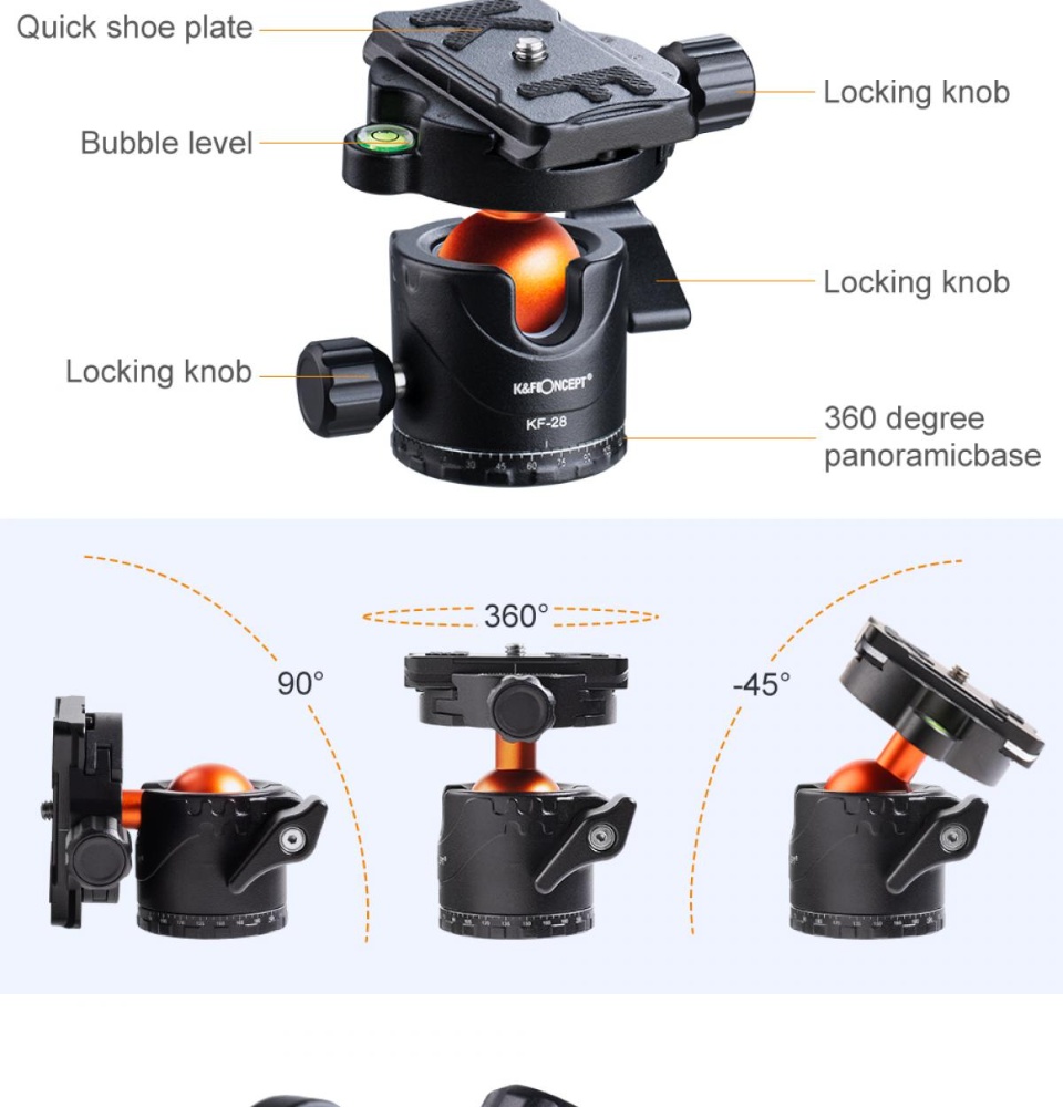 K&F Concept Professional Metal Tripod Ball Head KF-28 Series KF28 Ballhead KF-LH28 | Ball Head Only KF31.023V1